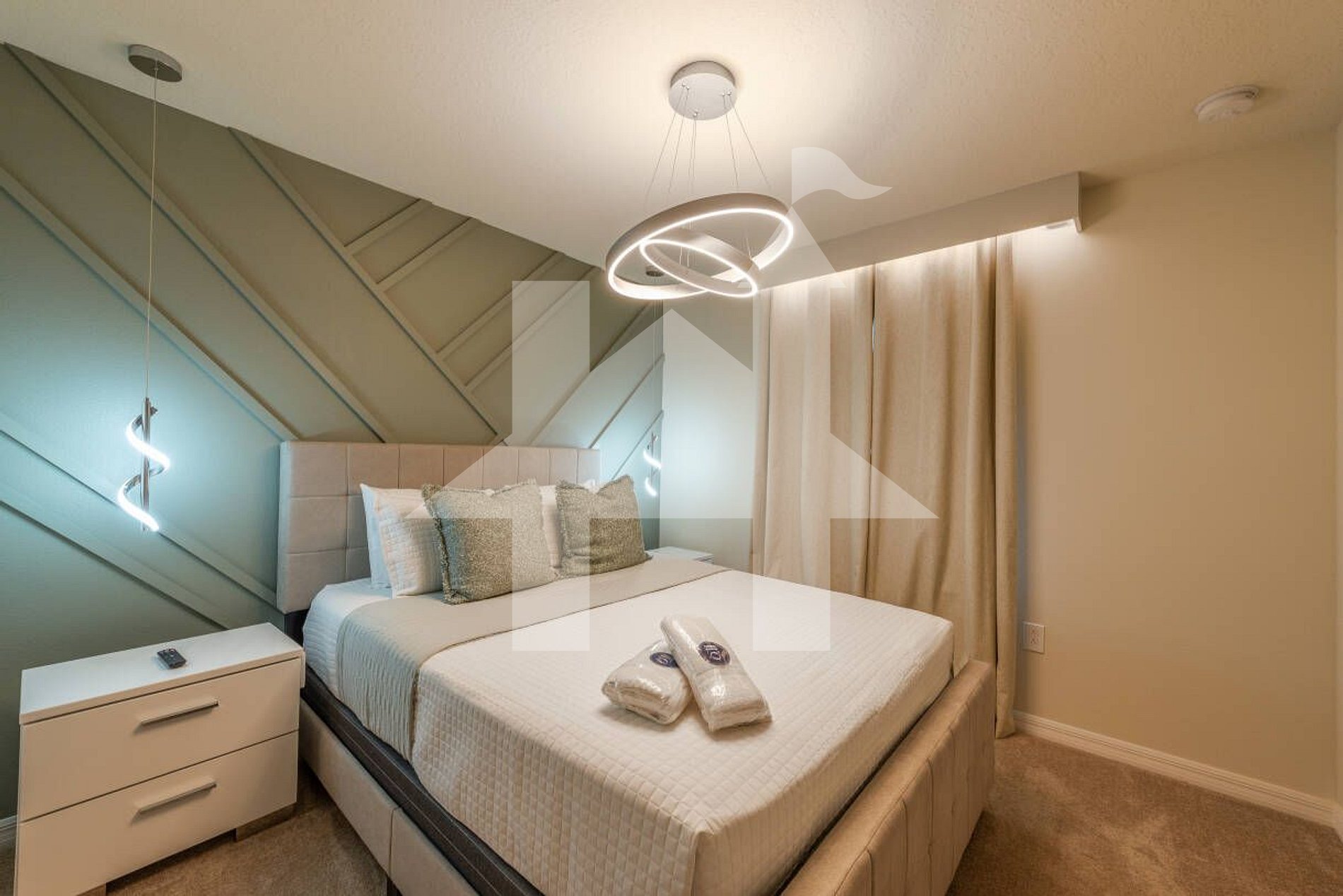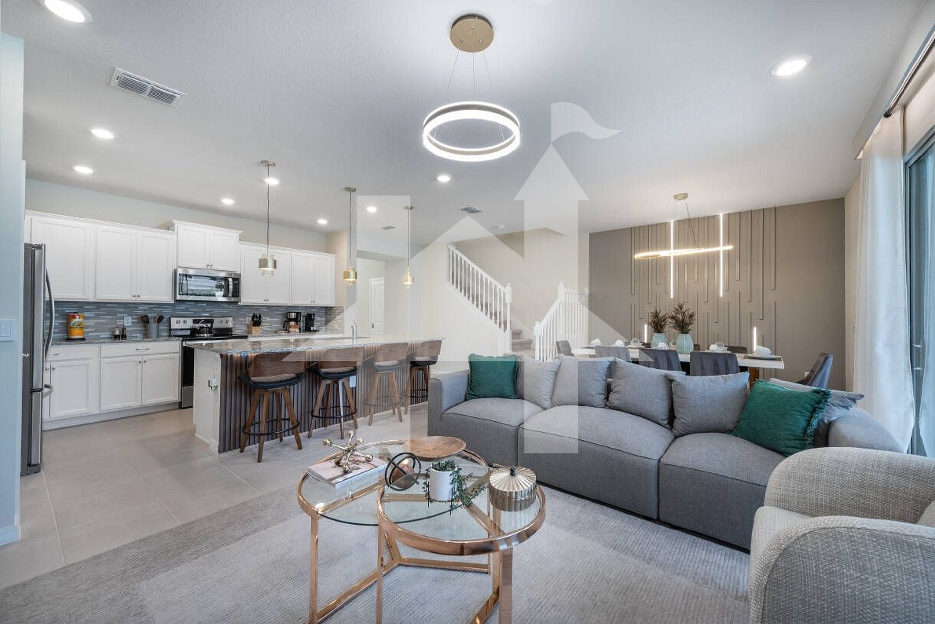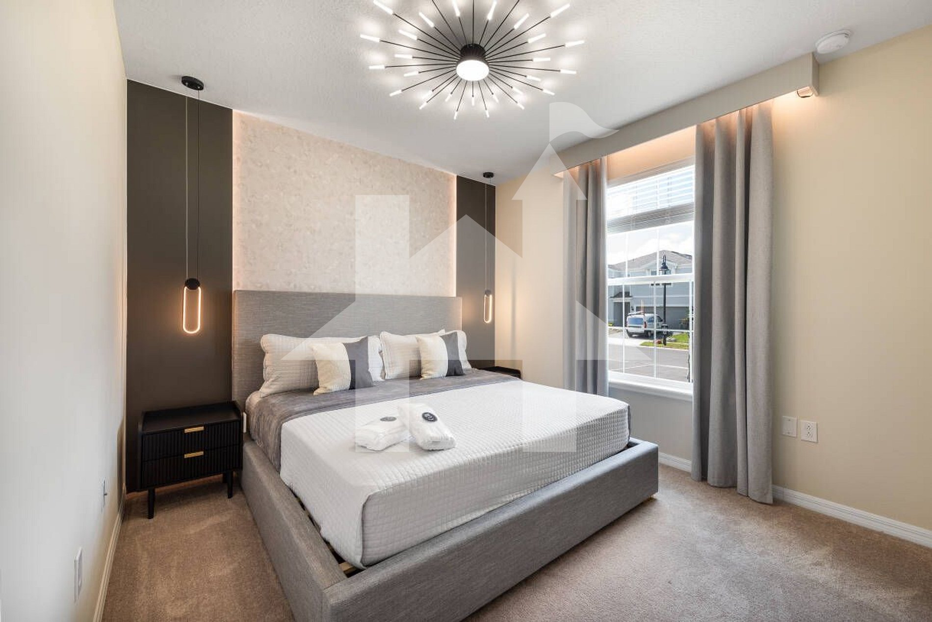 Windsor Island: Uma casa de dois andares recém-construída, oferecendo 5 quartos e 4,5 banheiros. Acomoda até 12 hóspedes, com cozinha totalmente equipada, áreas de estar espaçosas e quartos temáticos. Destaques incluem uma piscina aquecida privada, sala de estar temática do Mario, quarto principal com cama king-size e WiFi gratuito. As comodidades do resort incluem piscinas, rio lento, hidromassagem, playground, academia e muito mais, em uma comunidade fechada com segurança 24 horas.