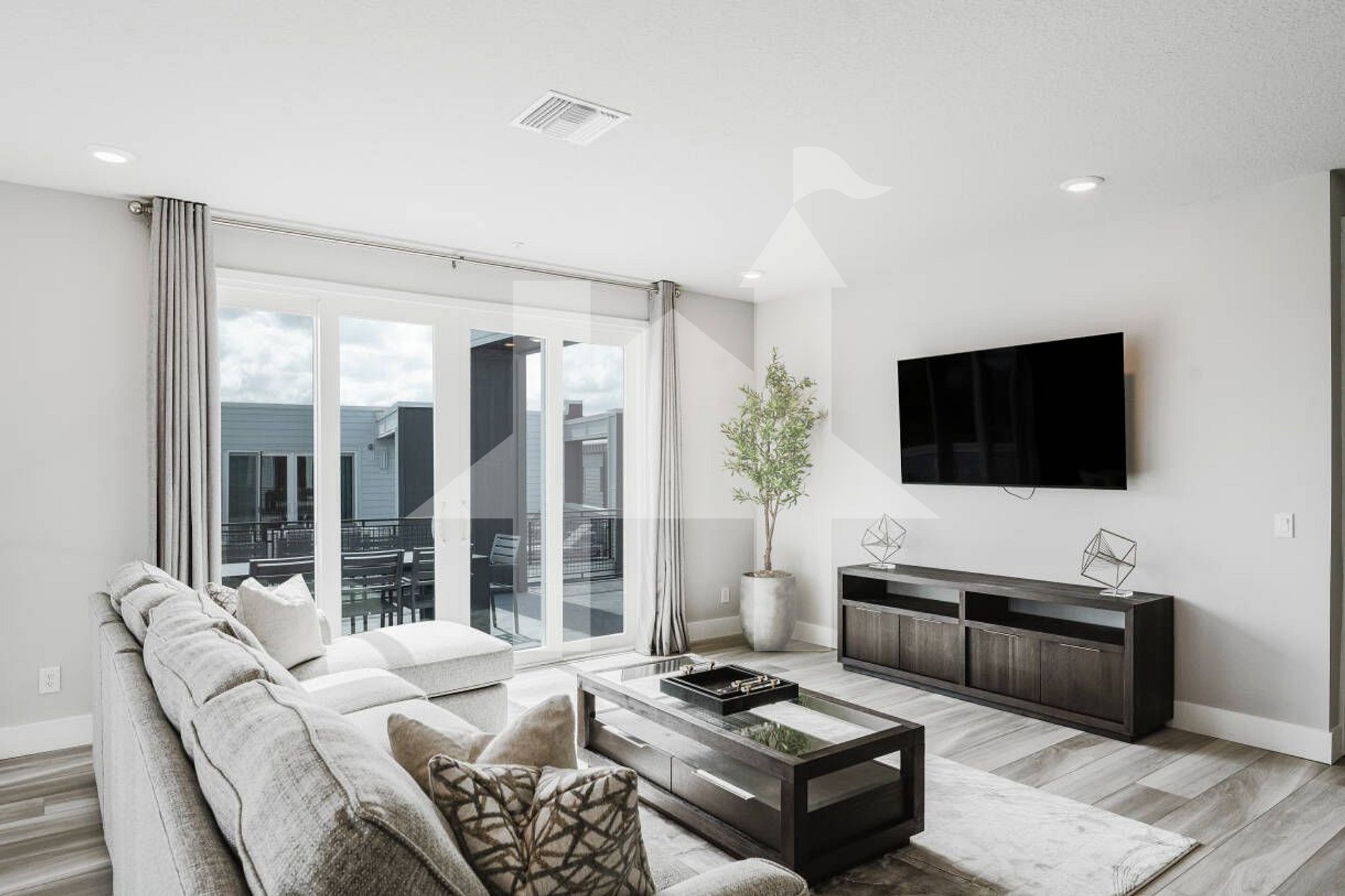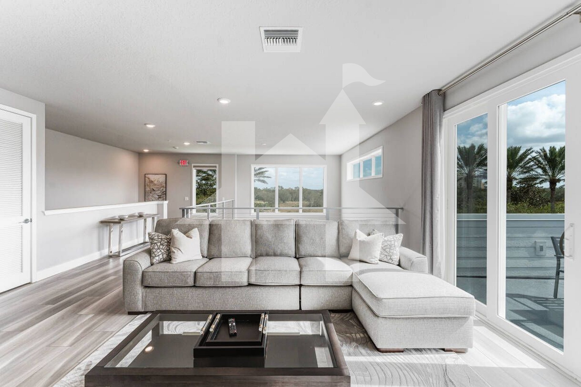 Este loft moderno de dois andares está localizado no segundo piso de um prédio seguro e possui pé direito alto, decoração refinada e um layout aberto e arejado ideal para famílias e grupos. Com Smart TVs em todos os cômodos, mesa de sinuca e terraço privativo, é o cenário perfeito para relaxar após um dia nos parques.