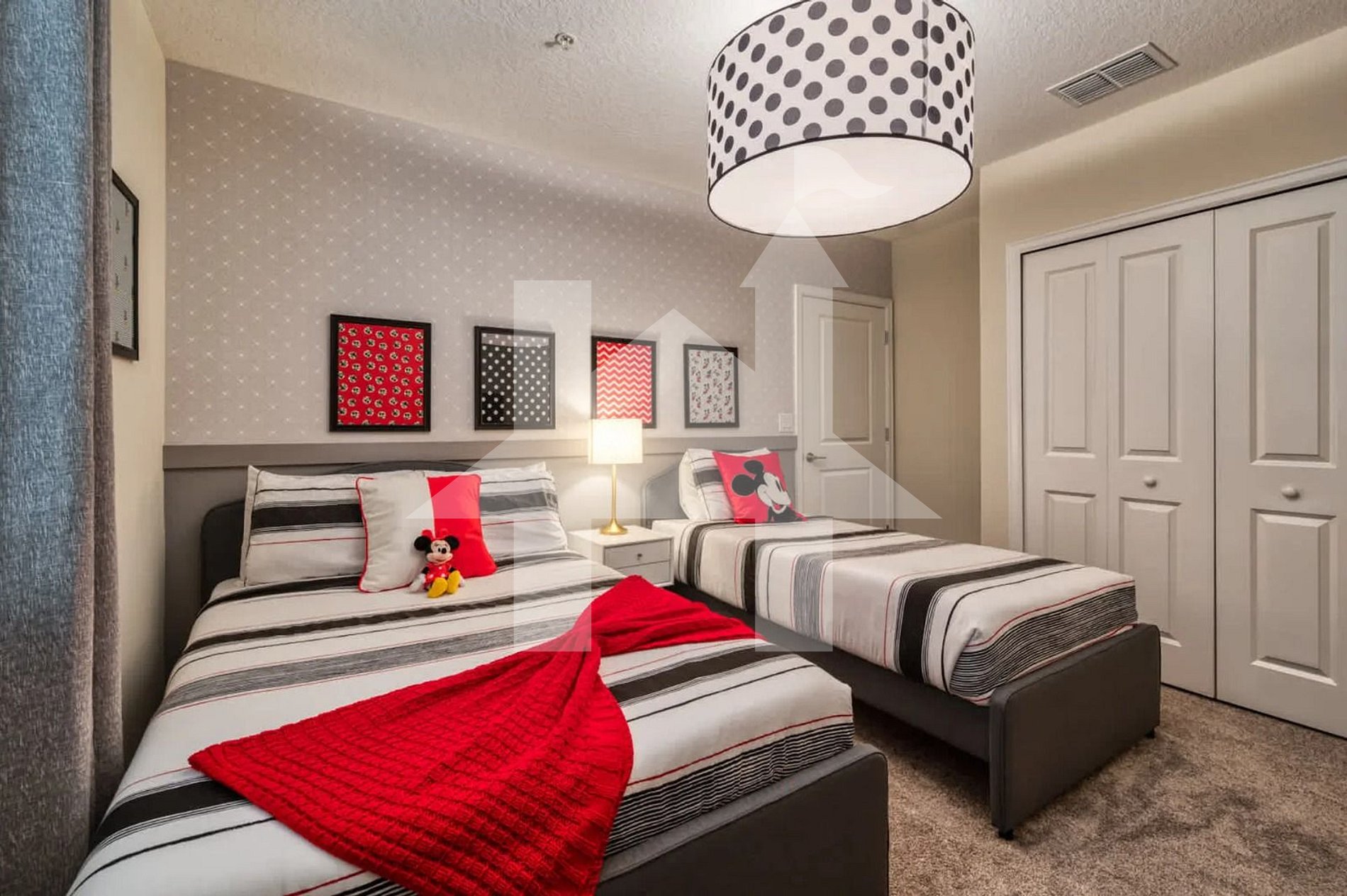 Quarto Temático Mickey: Pensado especialmente para crianças e fãs da Disney, esse quarto conta com uma cama de casal e uma cama de solteiro, além de banheiro privativo. O design lúdico garante uma experiência inesquecível para os pequenos e para quem deseja viver a magia até na hospedagem.