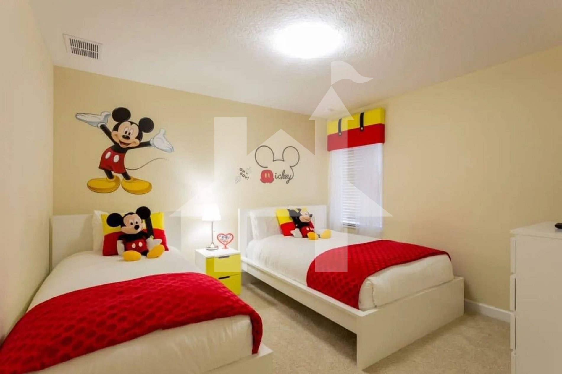 Quarto Temático Mickey (2 hóspedes): também com duas camas de solteiro, este quarto tem decoração inspirada na Disney, oferecendo um espaço mágico e inesquecível para os pequenos.
