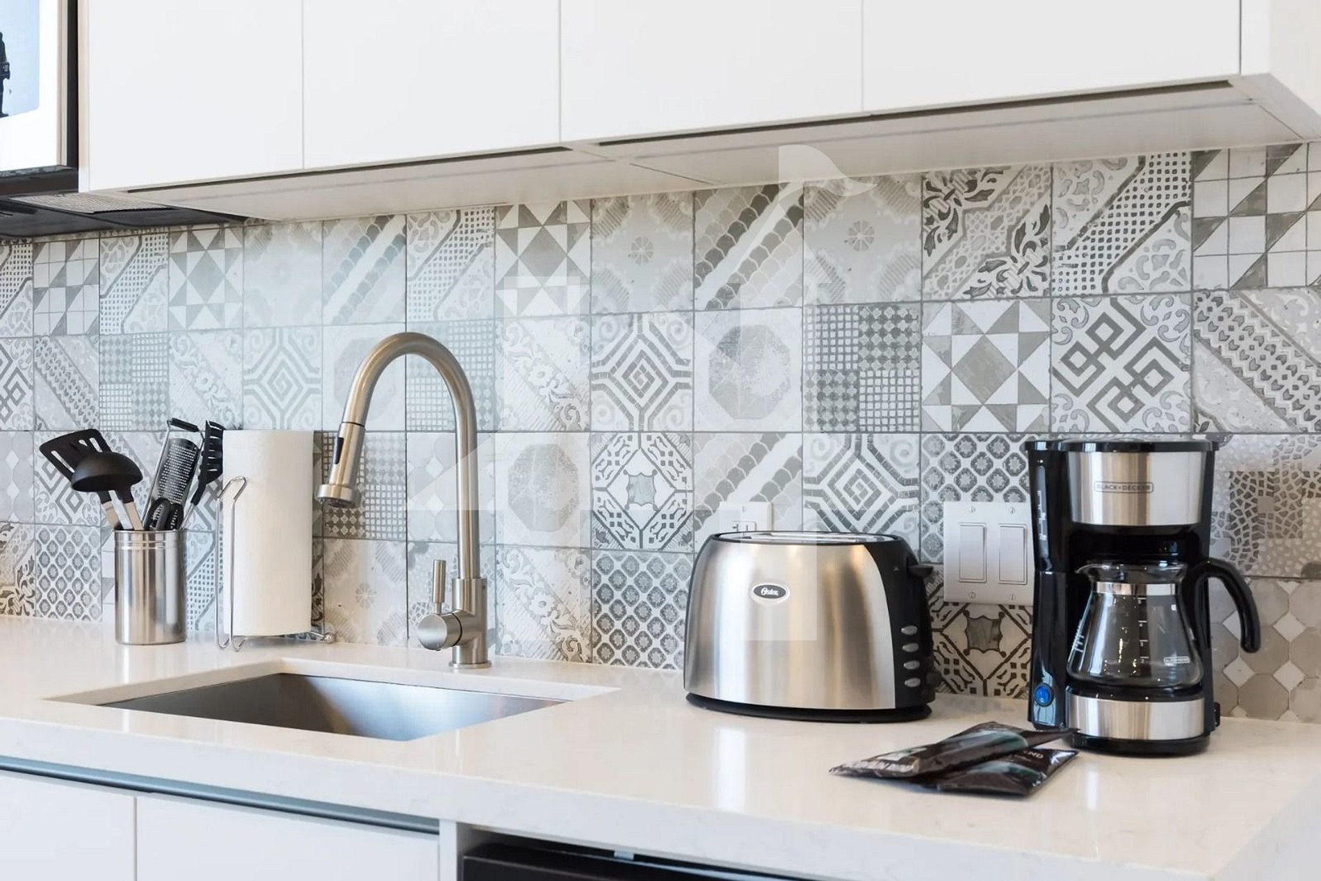 Ambiente claro e integrado que une funcionalidade e sofisticação. A sala conta com sofá-cama e smart TV, e a varanda é perfeita para relaxar e sentir o clima vibrante de Miami. A cozinha está equipada com tudo que você precisa para preparar refeições ou cafés rápidos antes de explorar a cidade.