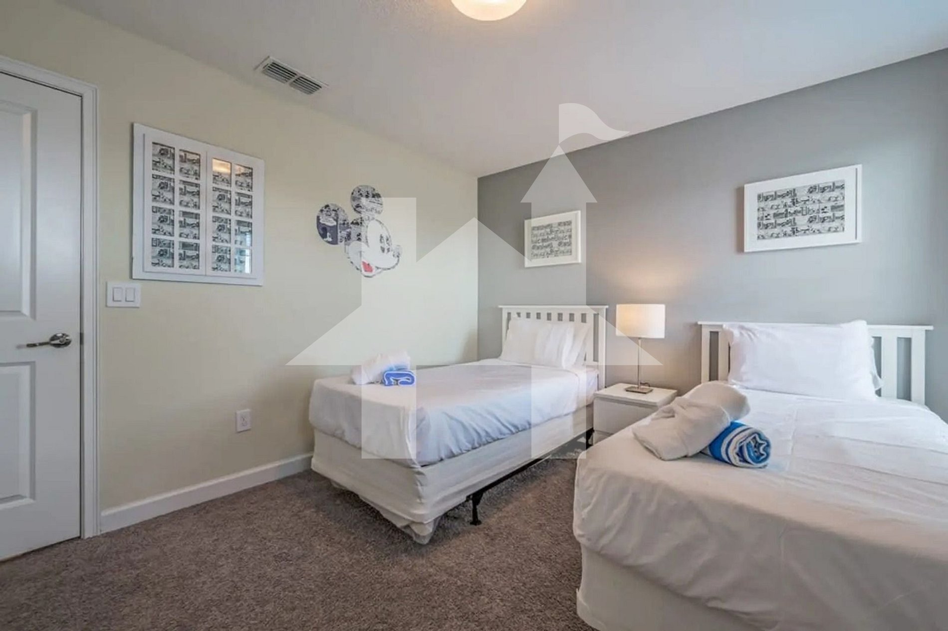 Quarto 3 (andar superior – tema Mickey): 2 camas de solteiro