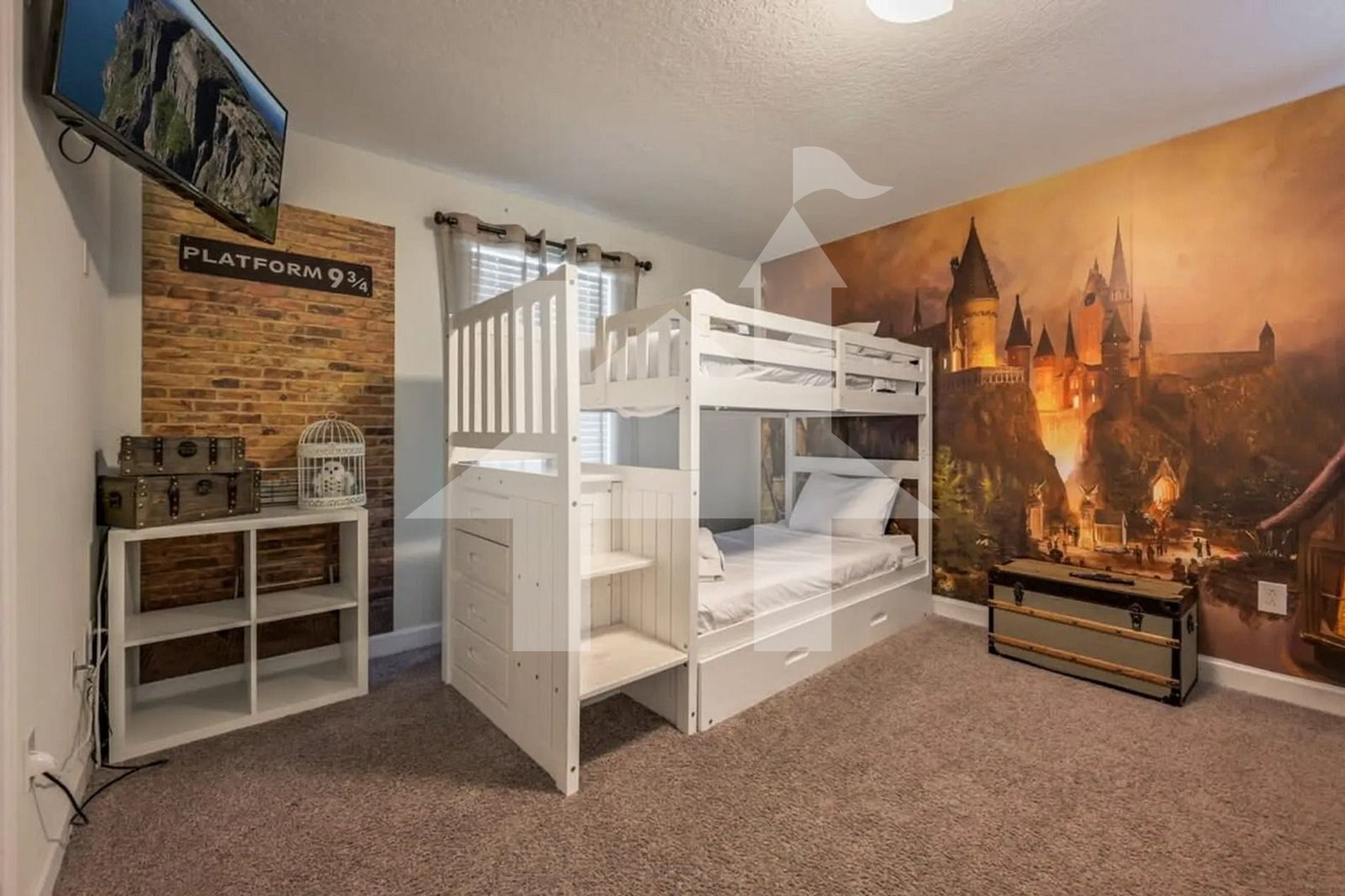 Quarto 4 (andar superior – tema Harry Potter): 2 beliches (4 camas de solteiro)