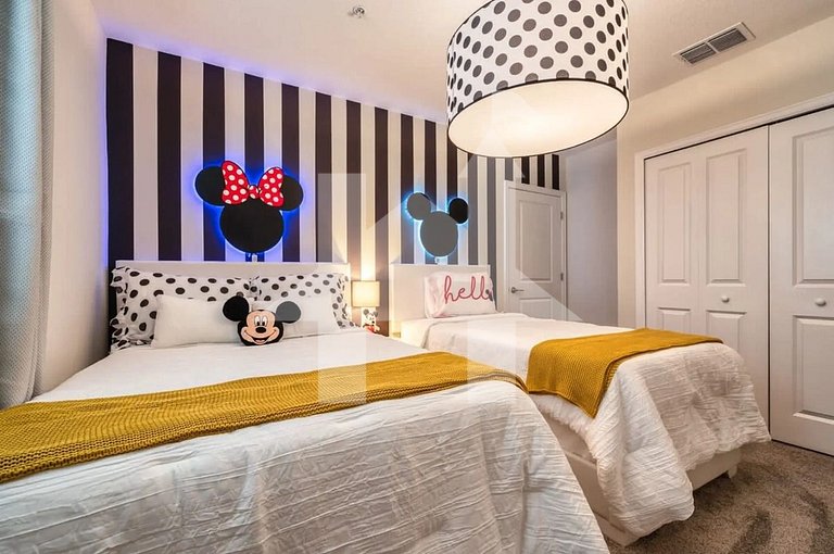 -Quarto Temático do Mickey: Cama de casal + solteiro, decoração lúdica, smart TV.