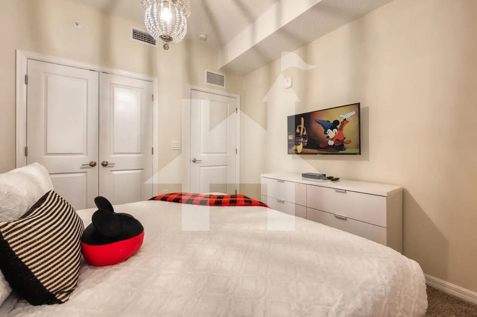 Aproveite o melhor de Orlando neste moderno apartamento de 2 quartos e 2 banheiros no Storey Lake Resort. Comporta até 5 hóspedes com conforto, incluindo suíte com cama king, quarto temático do Mickey, cozinha completa, Wi-Fi, lavanderia e varanda privativa. Aproveite as piscinas, lazy river, academia, bar, trilhas e muito mais. A apenas 10 minutos da Disney, próximo a outlets, restaurantes e atrações. Ideal para famílias e grupos.