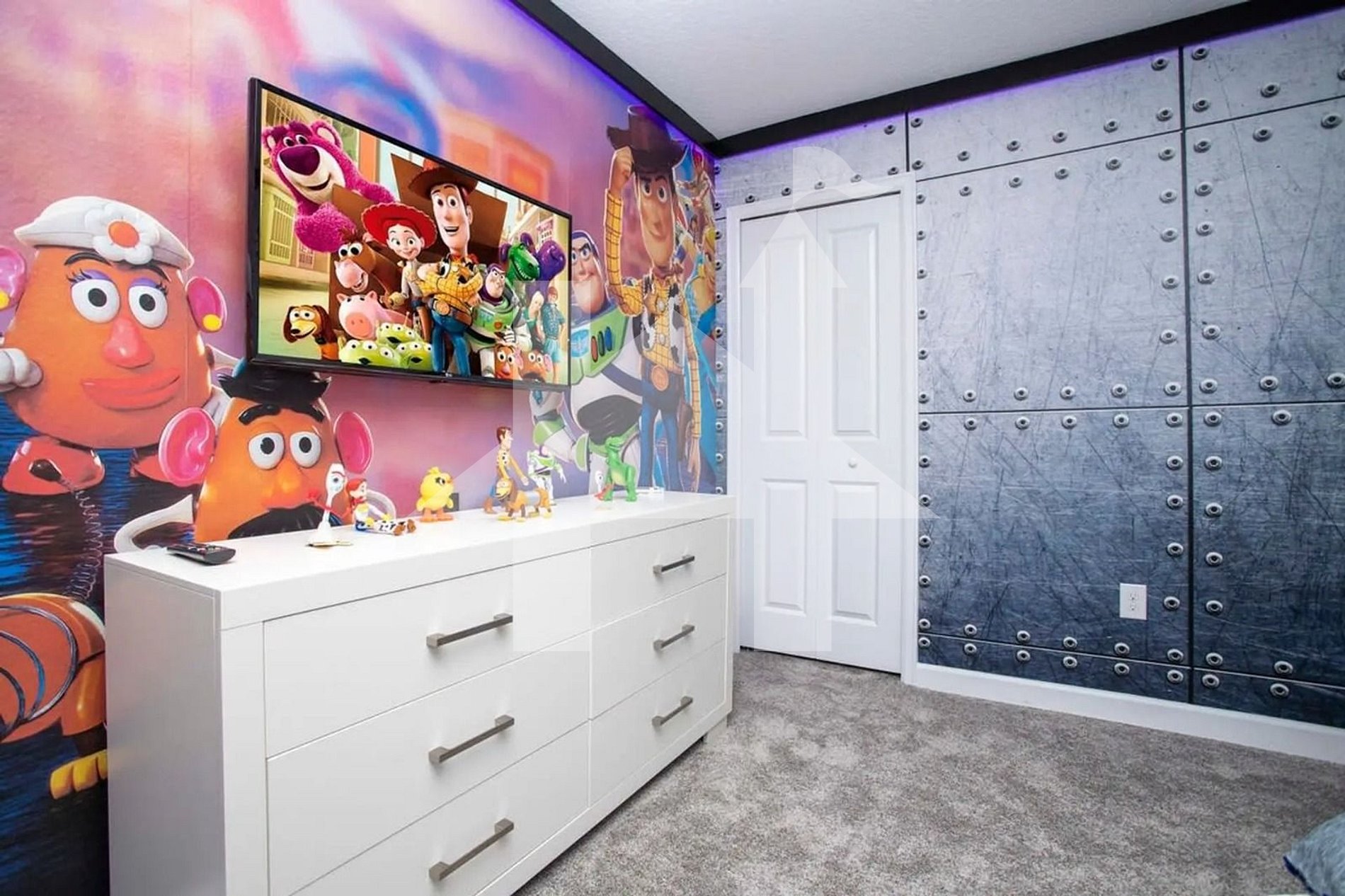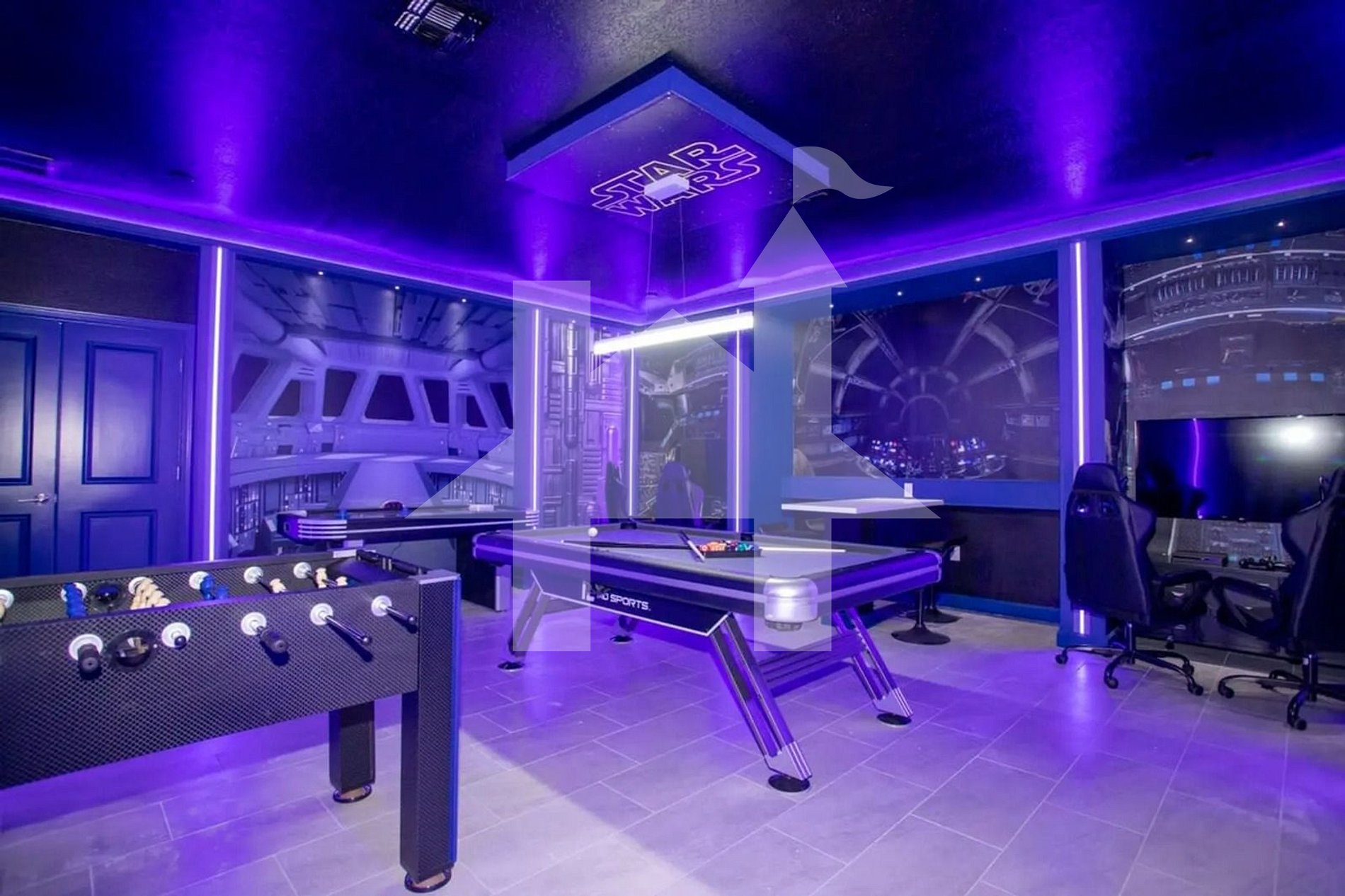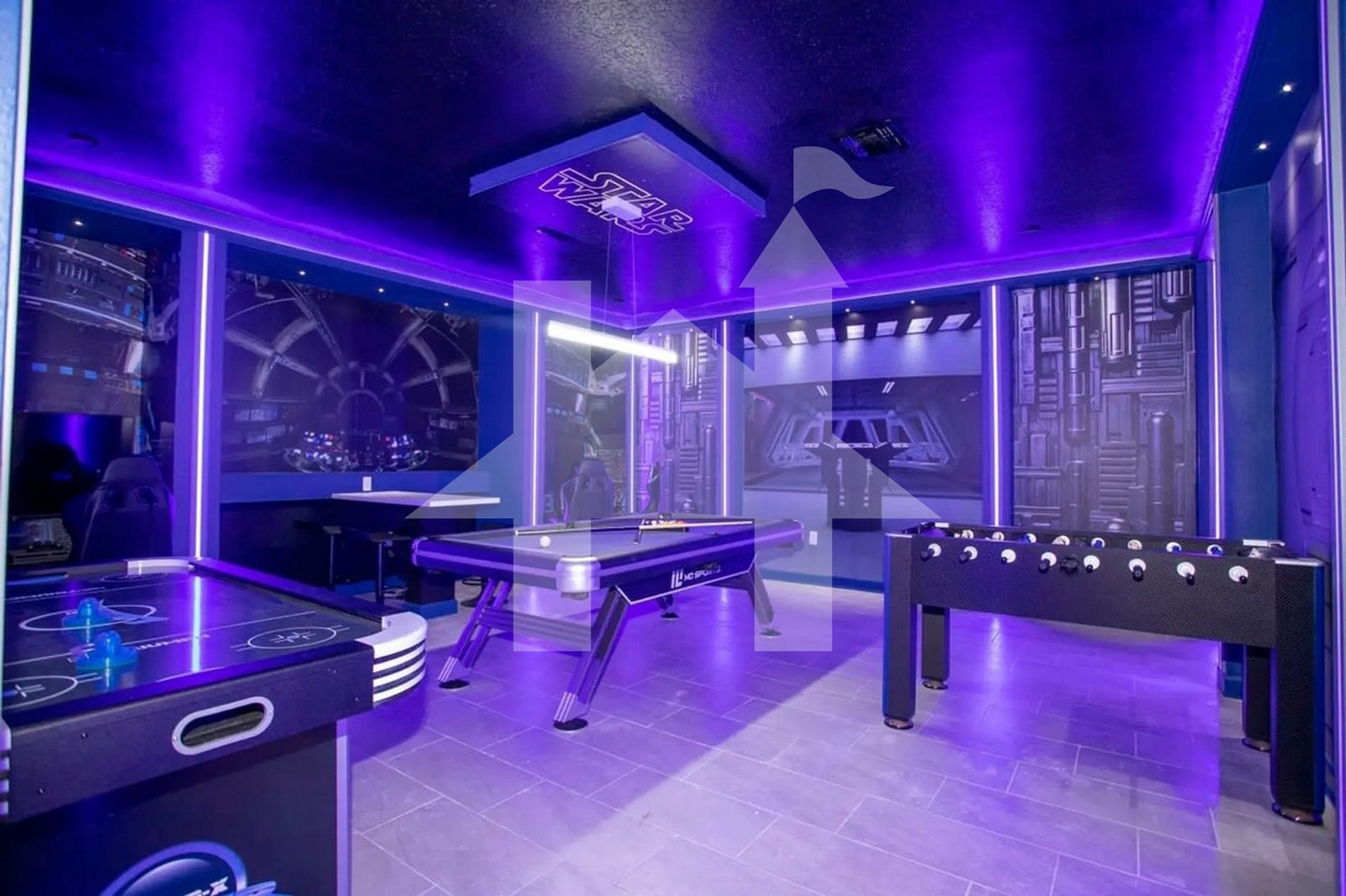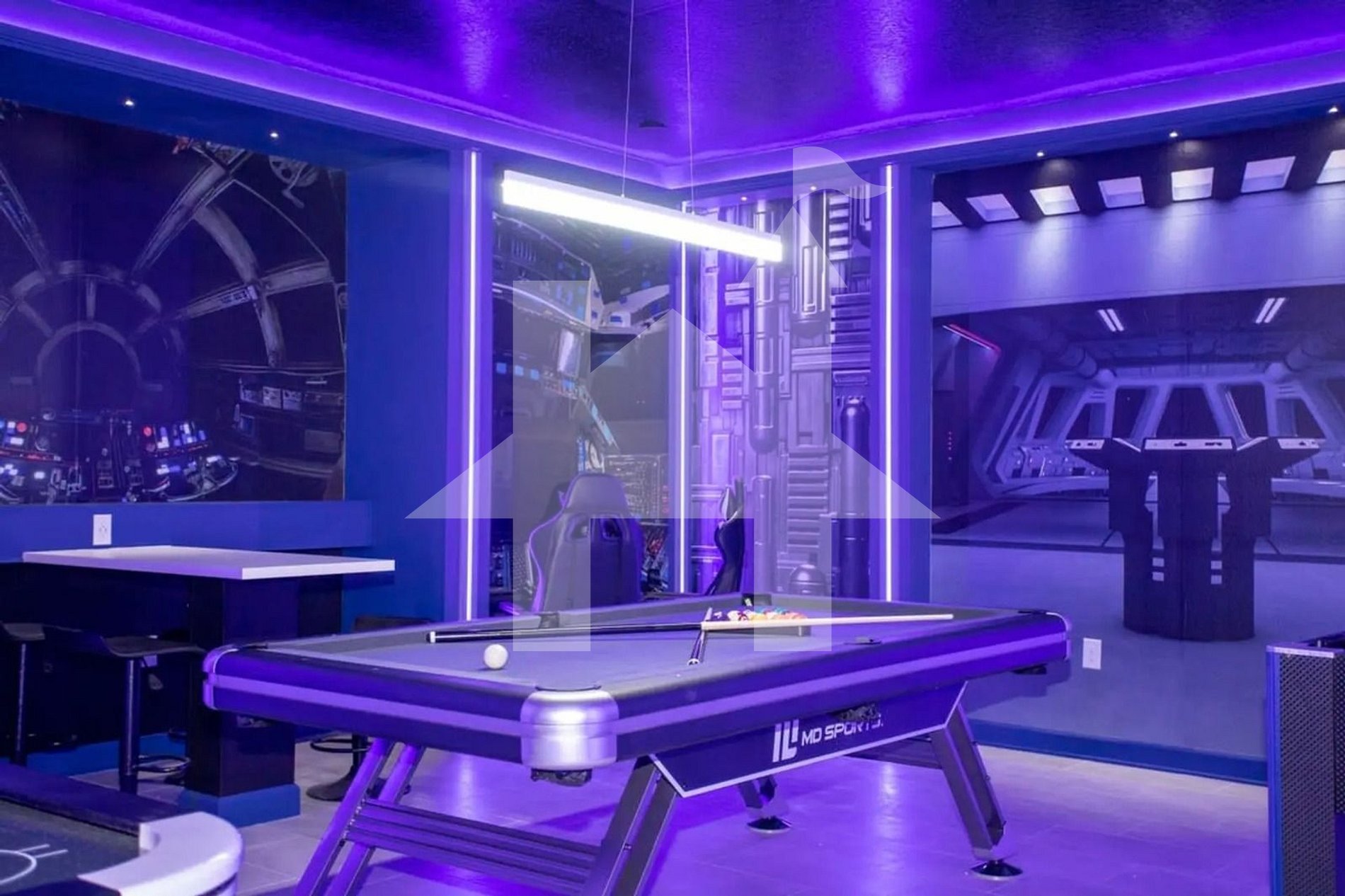 Viva o luxo nesta casa de 6 quartos e 6 banheiros no Storey Lake Resort, a apenas 10 minutos da Disney. Curta quartos temáticos como Frozen e Toy Story, sala de jogos inspirada em Star Wars e cinema com tema do Mickey. Relaxe na piscina privativa aquecida ou aproveite as comodidades do resort, como piscina pirata, lazy river, academia e mini-golfe. Wi-Fi, estacionamento e muito mais incluídos. Ideal para famílias que buscam conforto, diversão e estilo em Orlando!