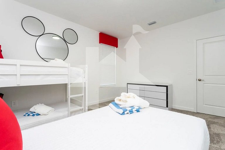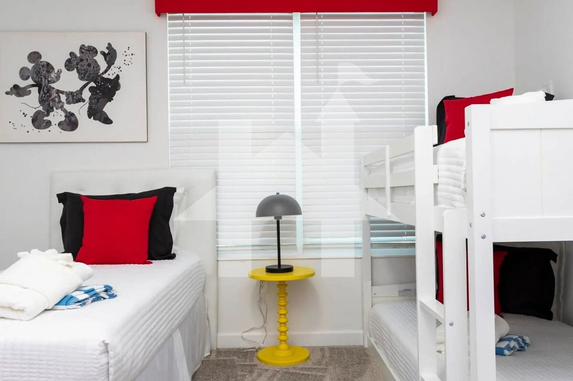 Quarto temático Mickey com beliche (2 camas de solteiro) e mais uma cama de solteiro
