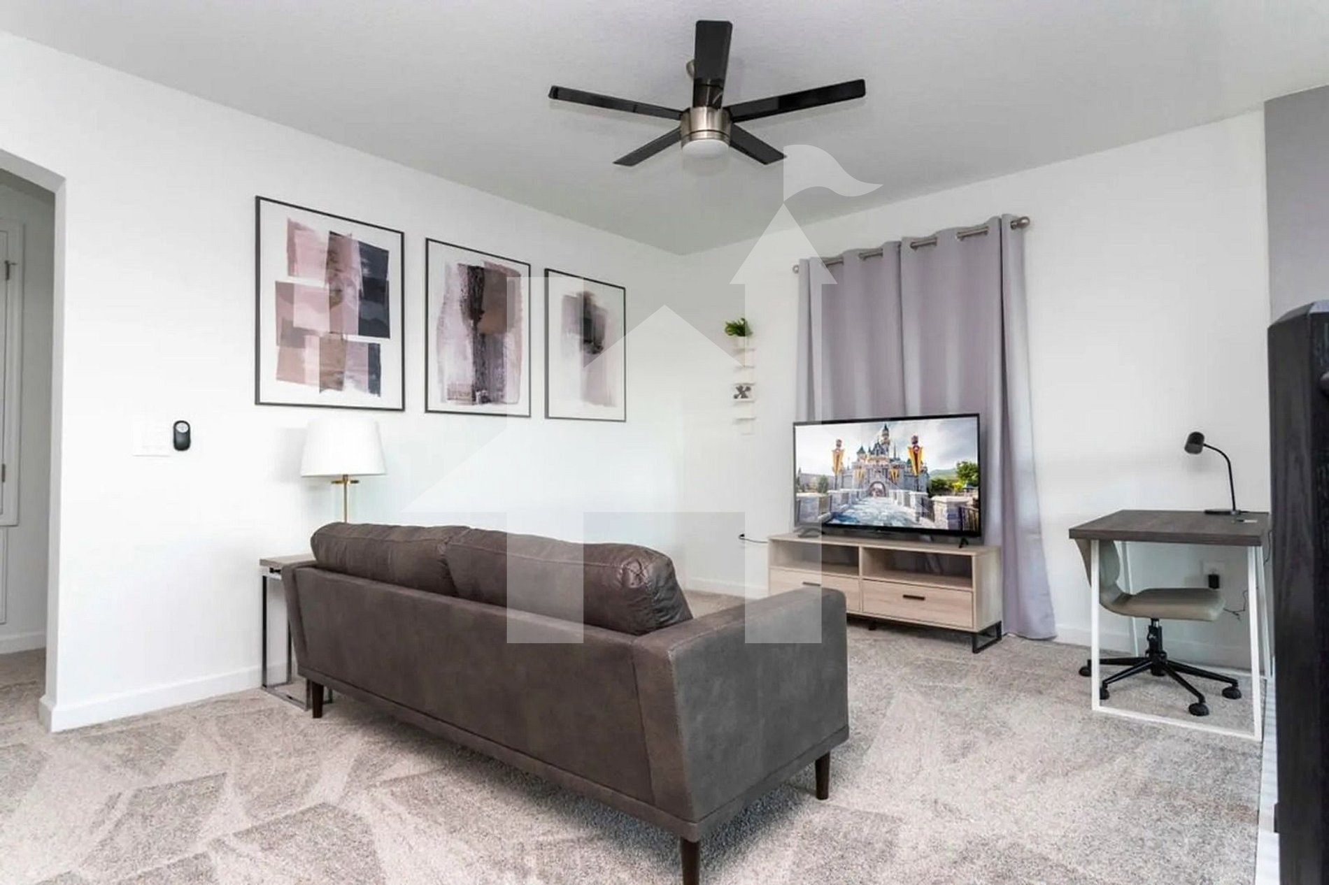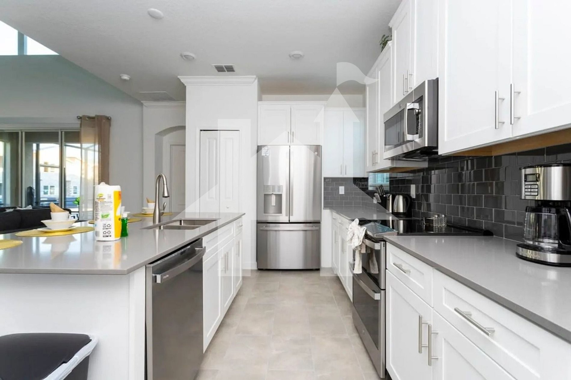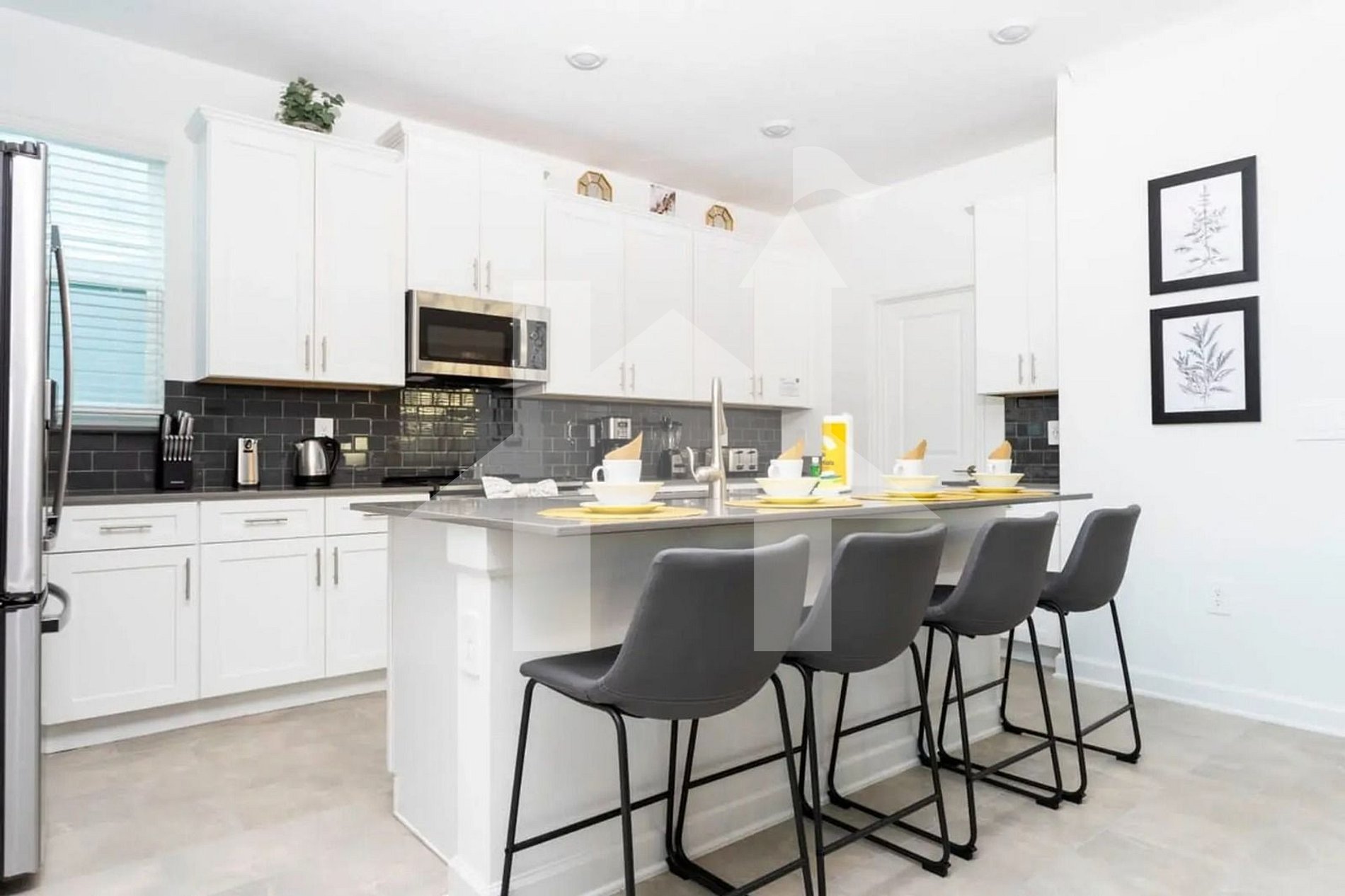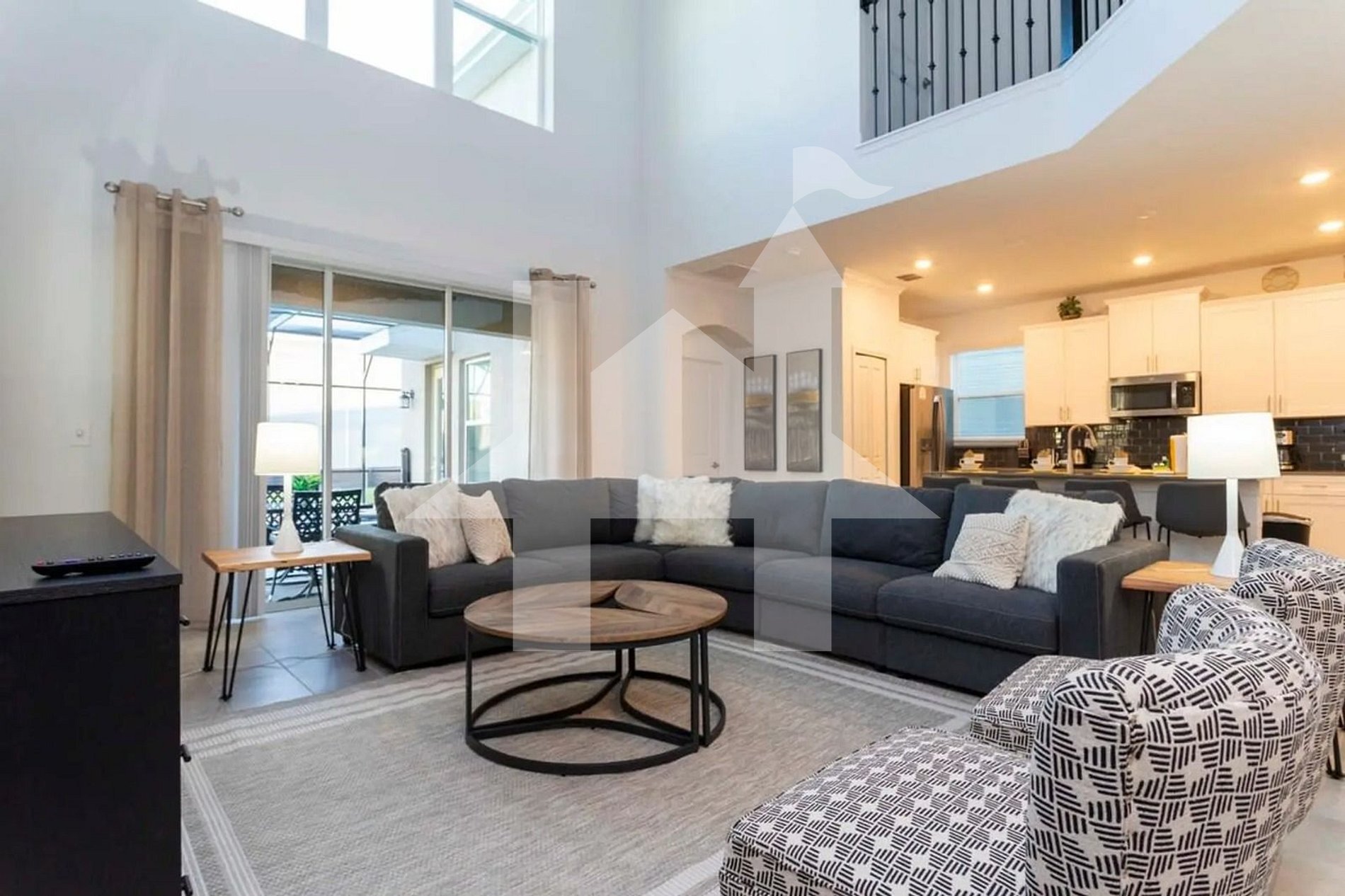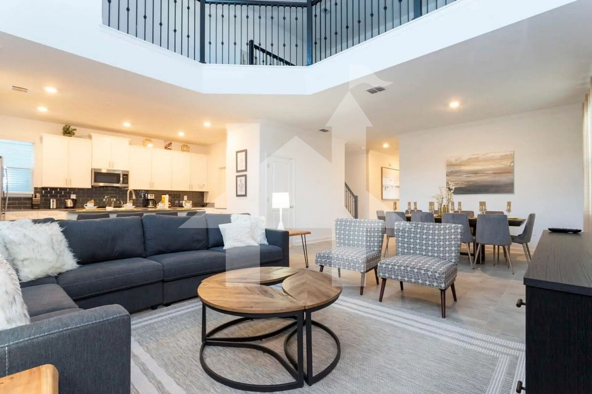 Esta espaçosa casa familiar de 5 quartos e 5 banheiros número 4318 está localizada no renomado resort Storey Lake, a poucos minutos dos parques da Disney. A propriedade oferece piscina privativa aquecida, quartos temáticos para crianças e acesso a comodidades exclusivas do resort, como lazy river, clube, academia e muito mais. O layout integrado da sala, área de jantar e cozinha oferece um ambiente acolhedor para momentos de lazer e confraternização.