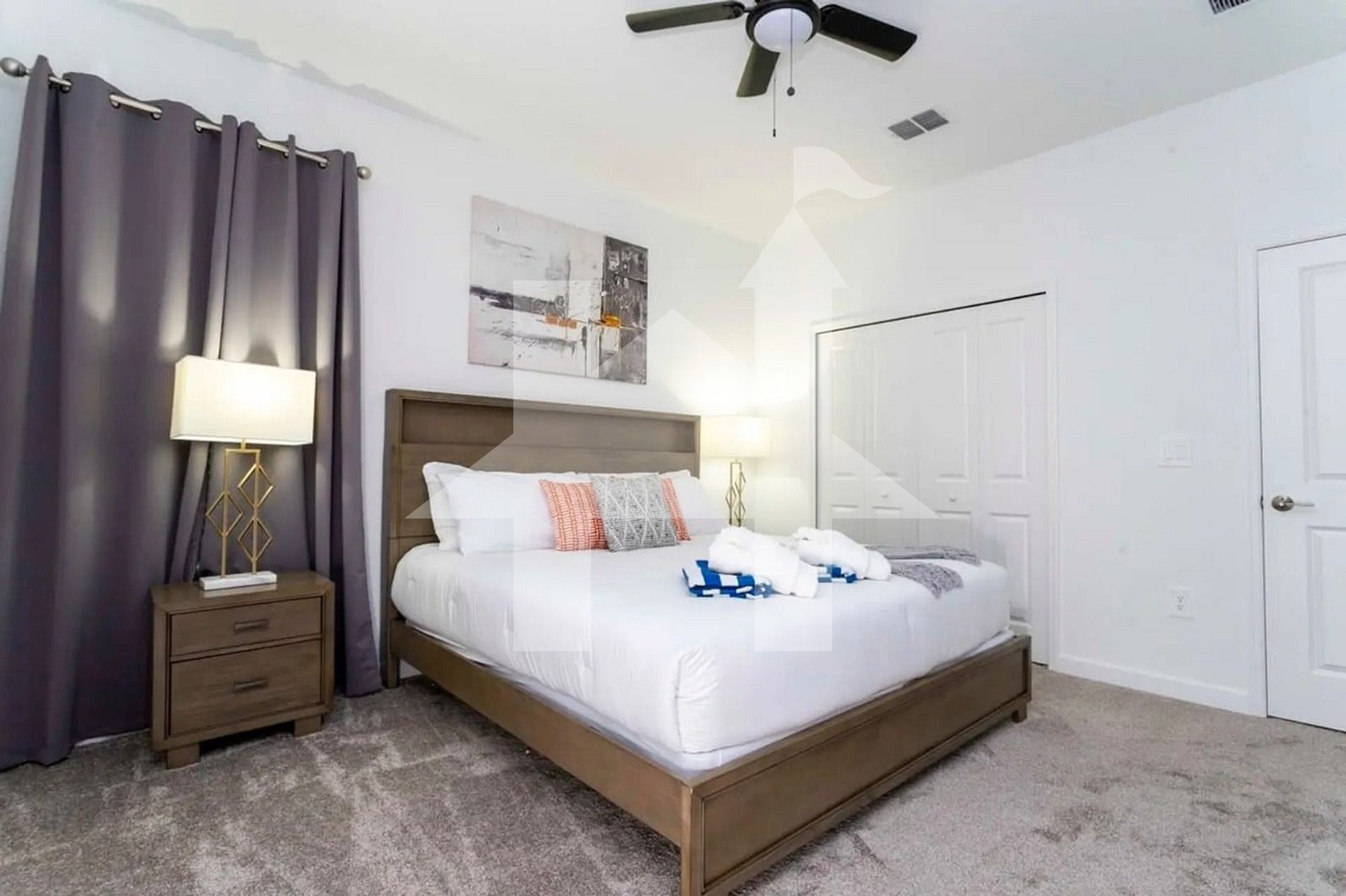 Esta espaçosa casa familiar de 5 quartos e 5 banheiros número 4318 está localizada no renomado resort Storey Lake, a poucos minutos dos parques da Disney. A propriedade oferece piscina privativa aquecida, quartos temáticos para crianças e acesso a comodidades exclusivas do resort, como lazy river, clube, academia e muito mais. O layout integrado da sala, área de jantar e cozinha oferece um ambiente acolhedor para momentos de lazer e confraternização.