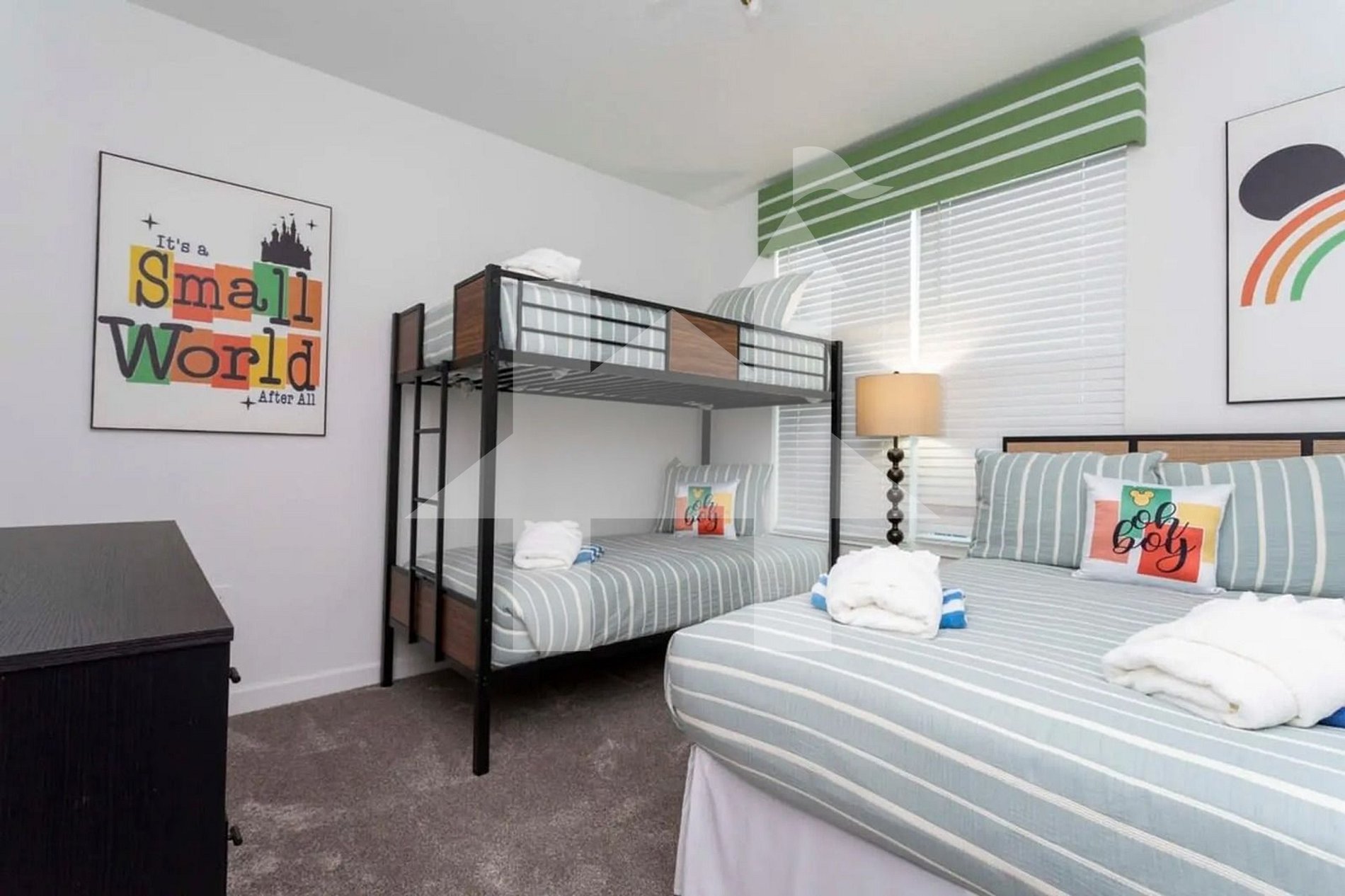 Descubra esta casa de 5 quartos e 5 banheiros no Storey Lake 4318, a poucos minutos da Disney. Ideal para famílias, acomoda até 13 pessoas e oferece piscina privativa aquecida, quartos temáticos infantis e acesso às comodidades do resort, como lazy river, academia e parque aquático. Espaçosa e confortável, combina privacidade, lazer e praticidade para uma estadia inesquecível em Orlando.