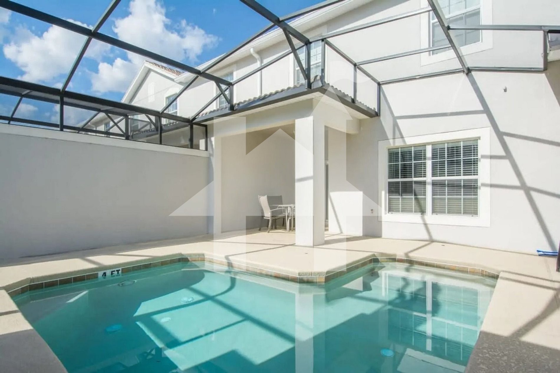 No pátio privativo e telado, aproveite a piscina exclusiva, perfeita para um mergulho pela manhã ou para relaxar após um dia nos parques. A piscina pode ser aquecida mediante solicitação, garantindo conforto durante todo o ano.
