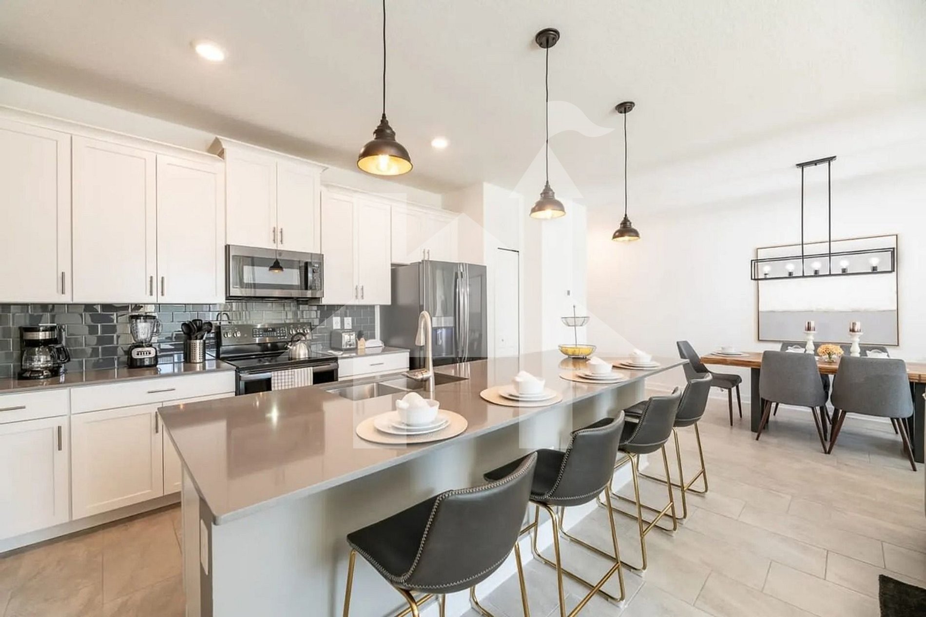 Descubra o charme deste elegante townhome de 4 quartos e 3 banheiros no Champions Gate Resort. Espaçoso e moderno, acomoda até 10 hóspedes com conforto. Conta com áreas de estar aconchegantes, decoração contemporânea e cozinha completa. Localizado a apenas 20 minutos da Disney, o resort oferece piscinas, academia, clubhouse e muito mais. Ideal para famílias e grupos que buscam praticidade, lazer e momentos inesquecíveis.