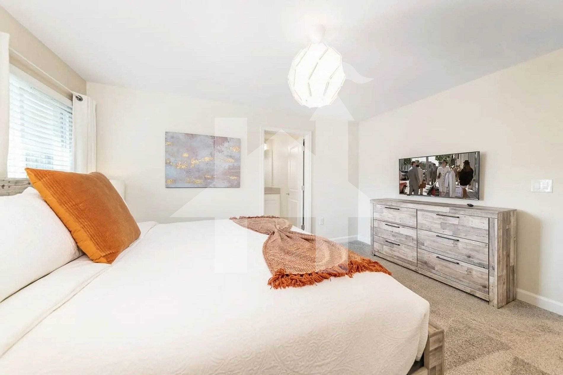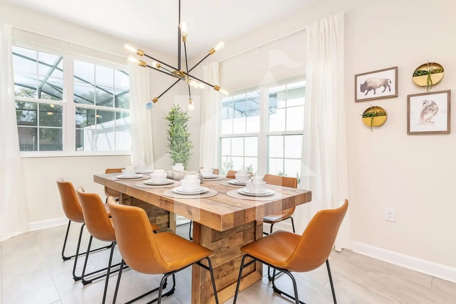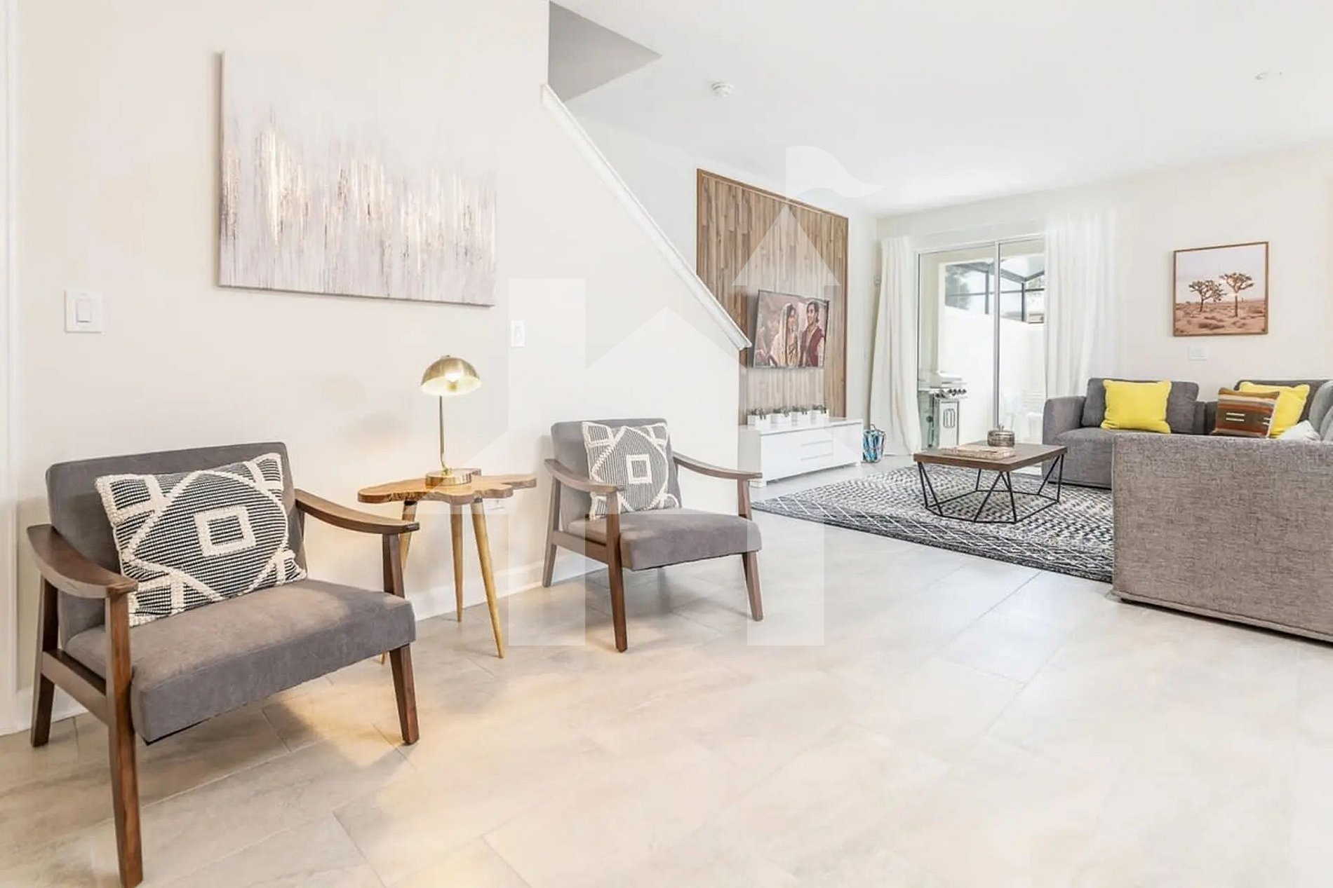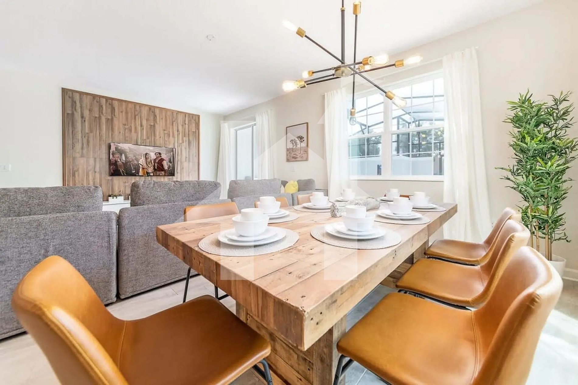Este sobrado decorado com bom gosto oferece uma atmosfera acolhedora e moderna, com um layout em conceito aberto que integra a sala de estar, a sala de jantar e a cozinha completa. É o cenário ideal para momentos em família, refeições em grupo e descanso após os passeios em Orlando.