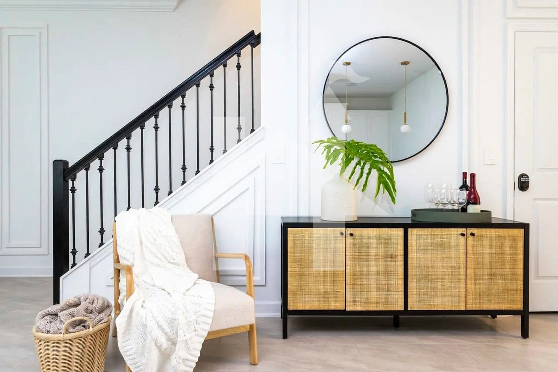 Área de estar com sofá/cadeira