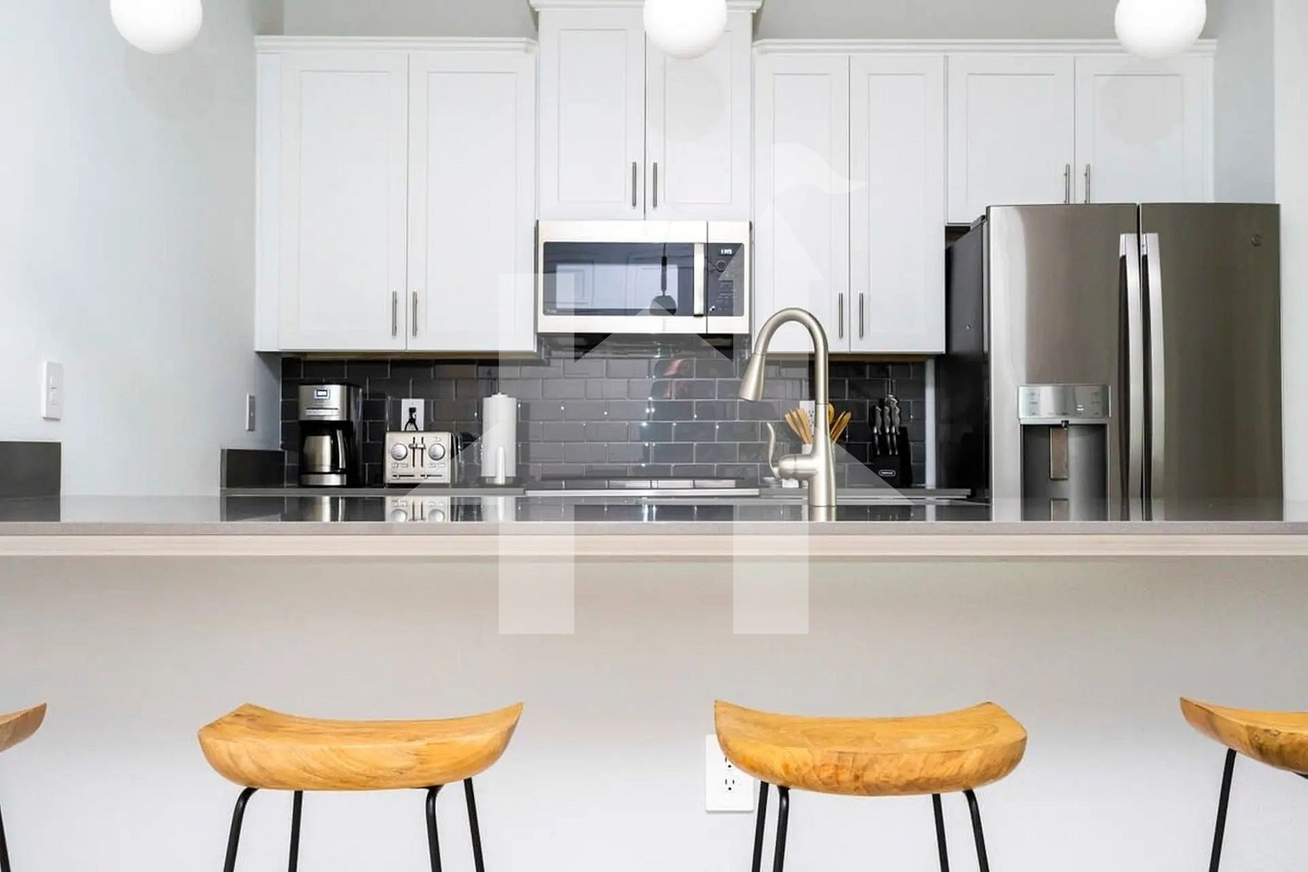 Prepare suas refeições na cozinha totalmente equipada, com eletrodomésticos em aço inox, utensílios completos e uma área de jantar espaçosa para todos os hóspedes.