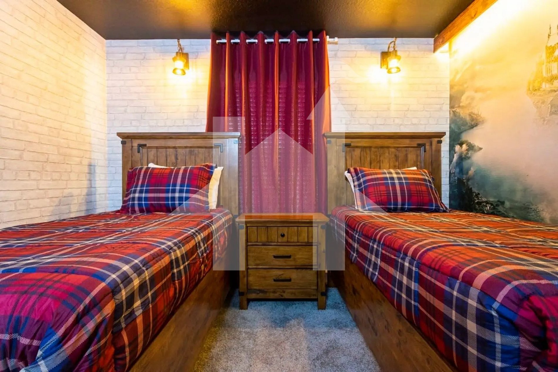 Quarto 5 (andar superior) – Tema Harry Potter | Duas camas de solteiro | Banheiro privativo