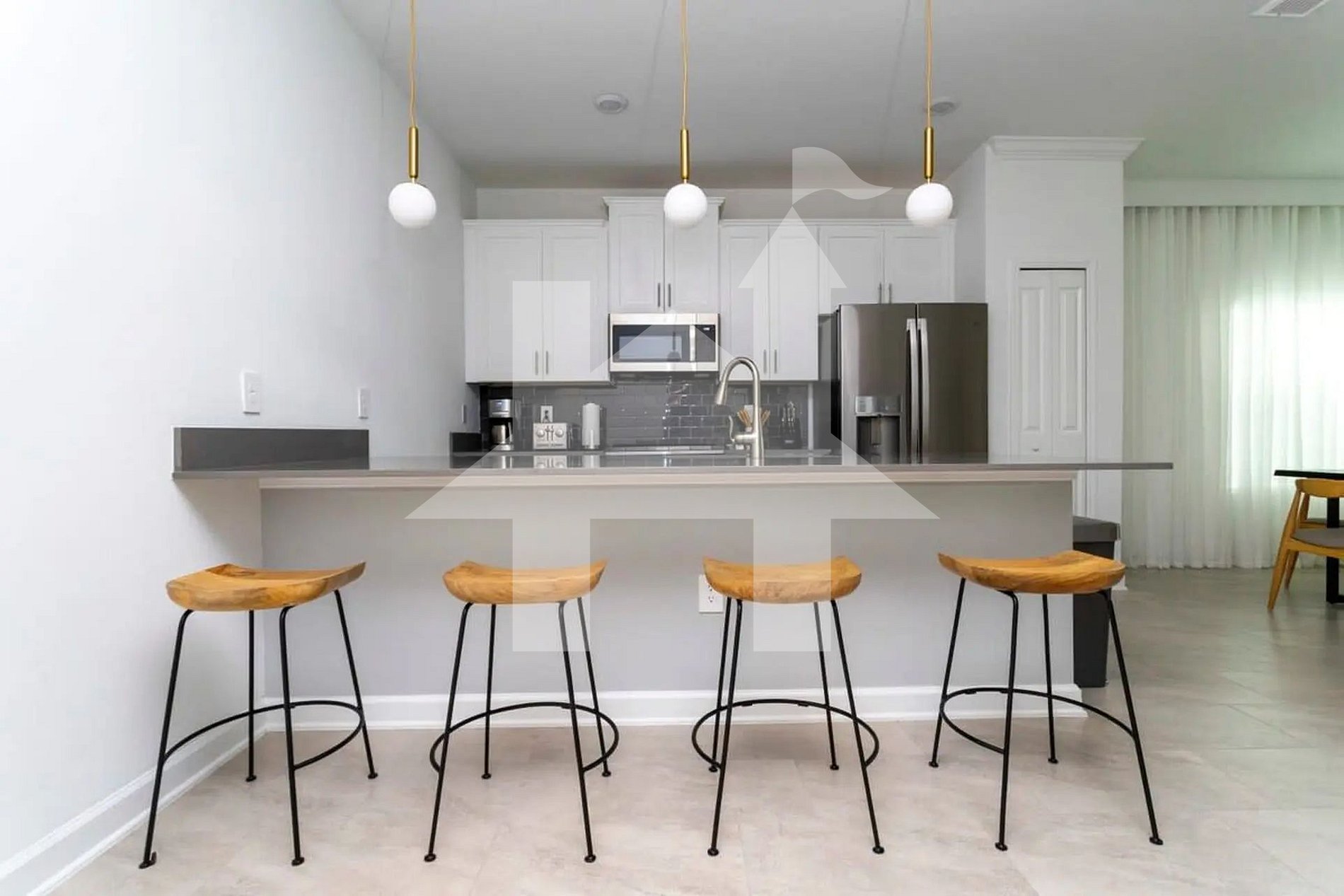 Prepare suas refeições na cozinha totalmente equipada, com eletrodomésticos em aço inox, utensílios completos e uma área de jantar espaçosa para todos os hóspedes.