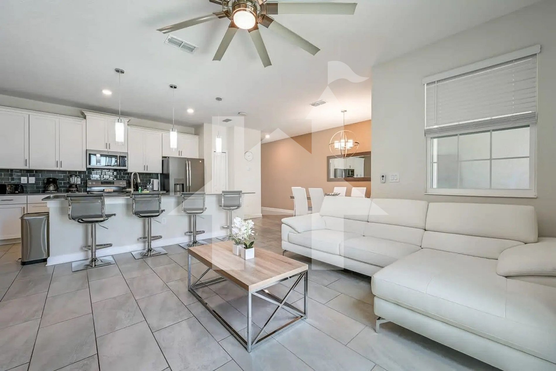 Você vai entrar em um lar de férias cuidadosamente decorado, onde cada detalhe foi pensado para proporcionar conforto, estilo e praticidade. A sala de estar ampla abraça tons neutros e tecidos suaves, com poltronas confortáveis, sofá espaçoso, iluminação aconchegante e uma grande TV para sessões de cinema em família. A área de jantar integra-se harmoniosamente, com mesa para grandes refeições e ambiente convidativo para conversar após o jantar.