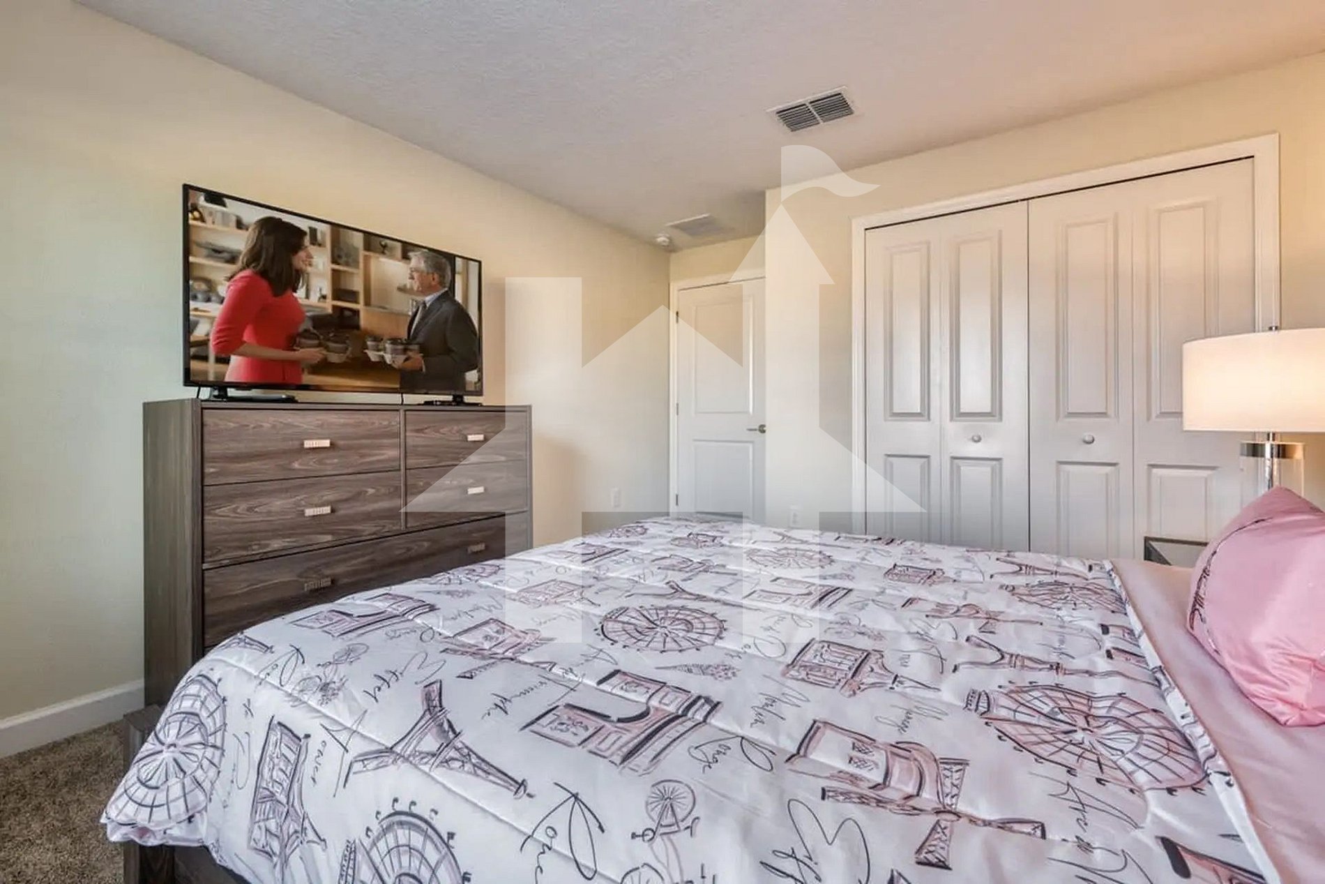 Great location resort with amazing amenities. Location is less than an hour's drive from most theme parks and is close to grocery store. Place was quiet and clean. Wasn't stocked and had to shop for everything to cook but did have everything needed to cook meals in ample kitchen. Greatful for in-house full washer and dryer and towels provided for showers and pool use.