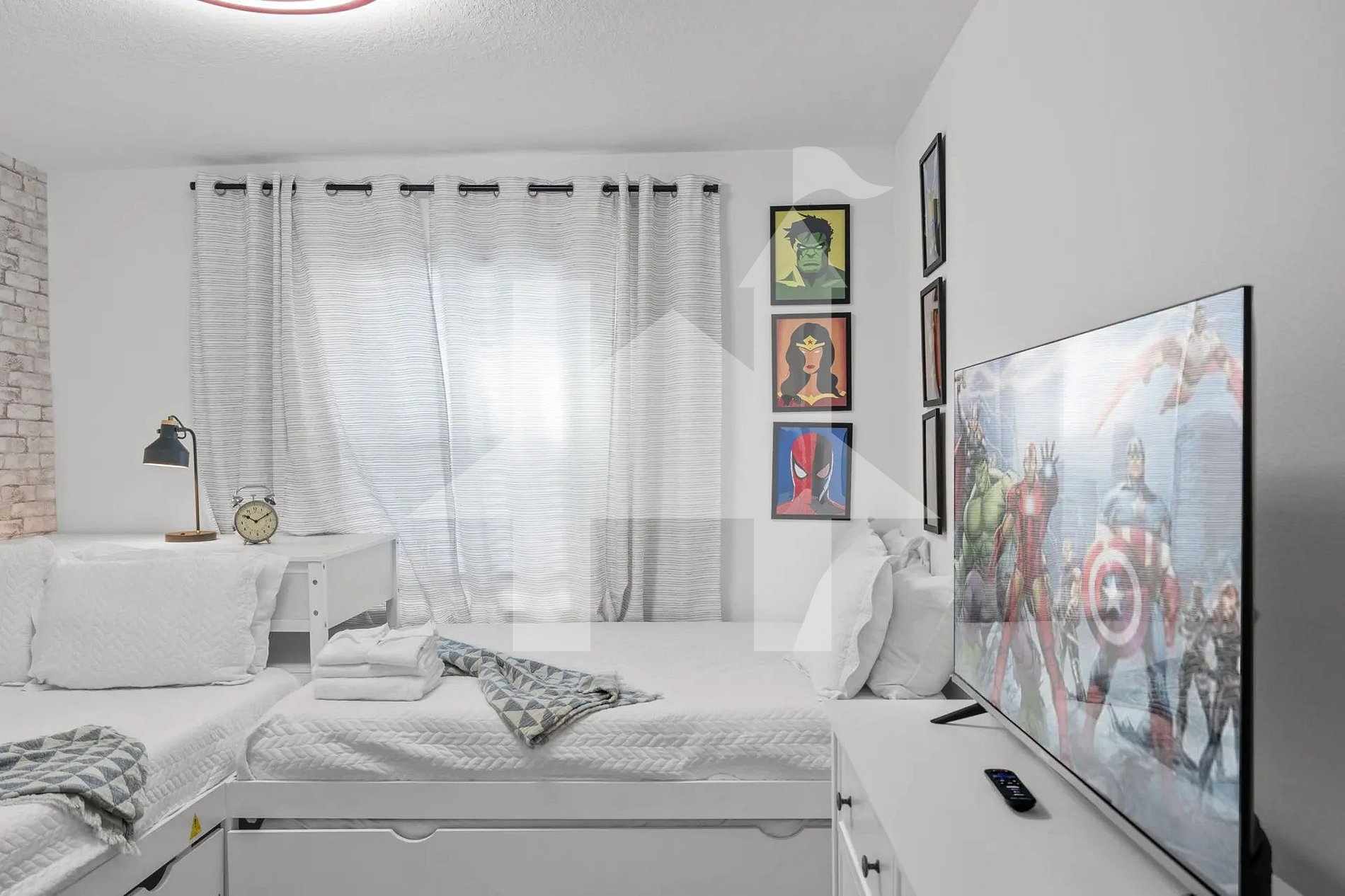 Quarto Temático Marvel: 2 camas de casal — vibrante e acolhedor, ideal para famílias ou grupos