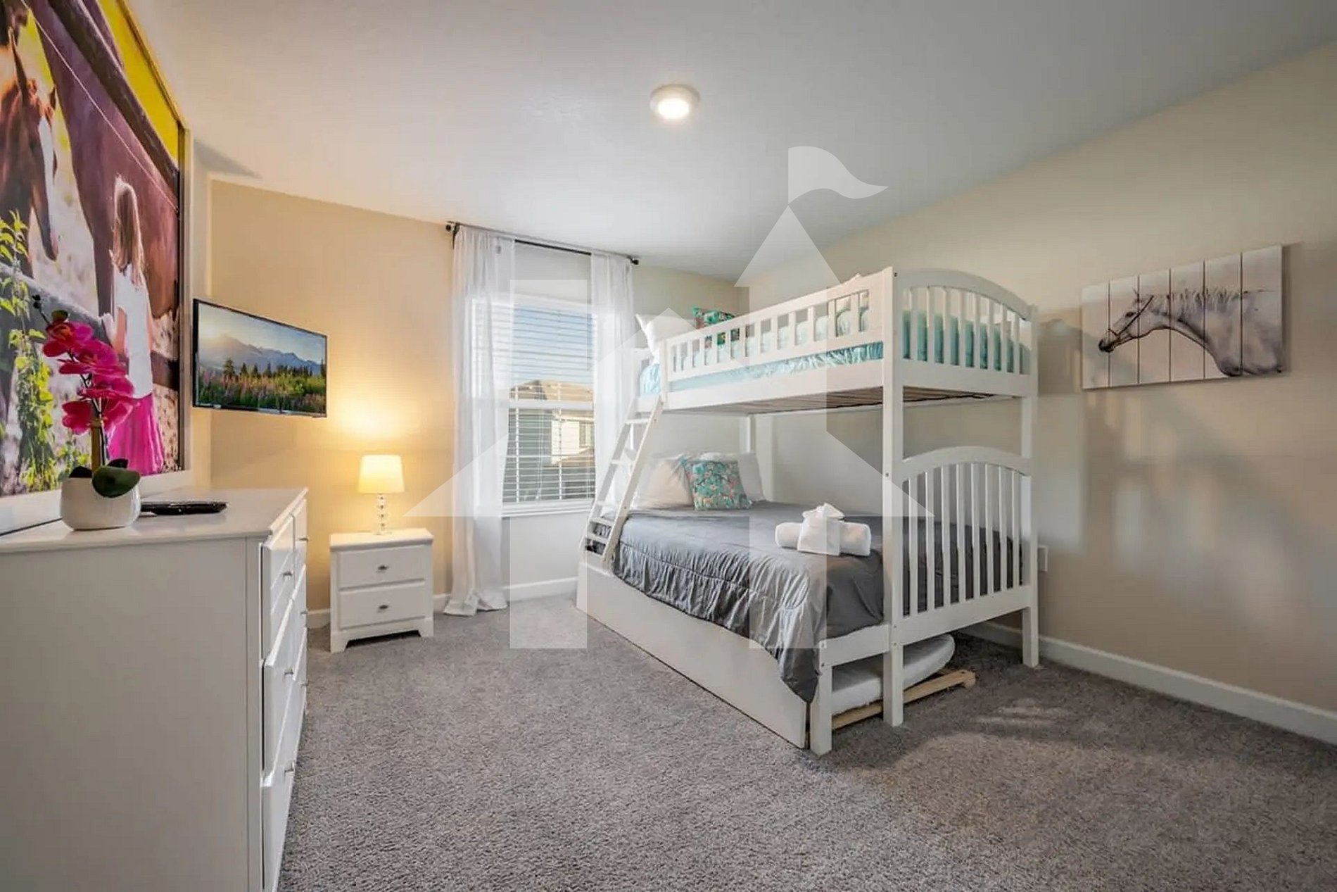 Encante-se com este moderno townhome de 4 quartos e 3 banheiros no Champions Gate Resort, ideal para até 11 hóspedes. Perfeito para famílias, oferece áreas amplas, cozinha completa e quartos temáticos para crianças. Relaxe na piscina privativa ou aproveite as amenidades do resort, como piscinas, lazy river, toboáguas, academia, campo de golfe e muito mais. Localização privilegiada, a apenas 20 minutos da Disney e próximo à Universal, SeaWorld, lojas e restaurantes.
