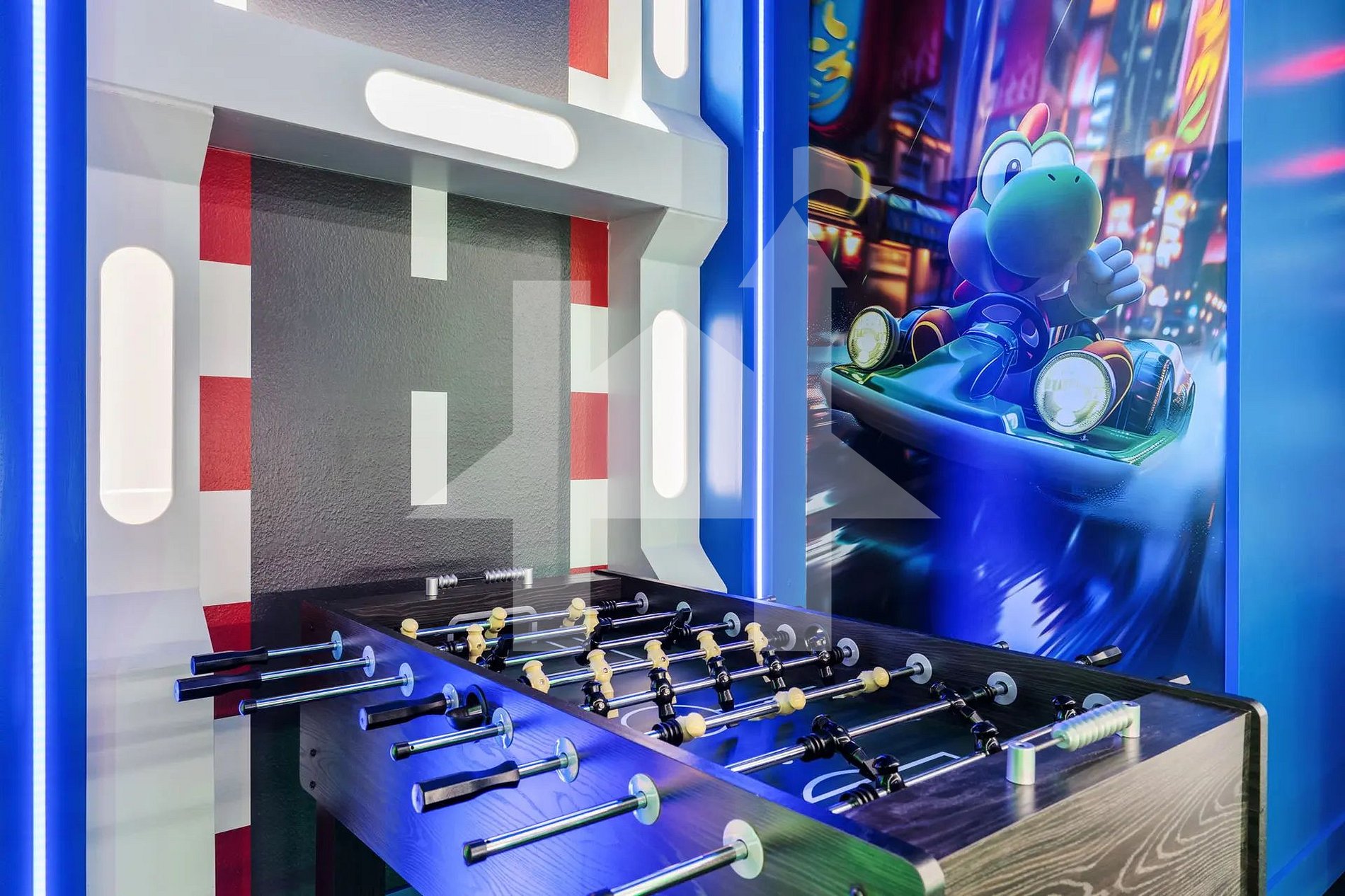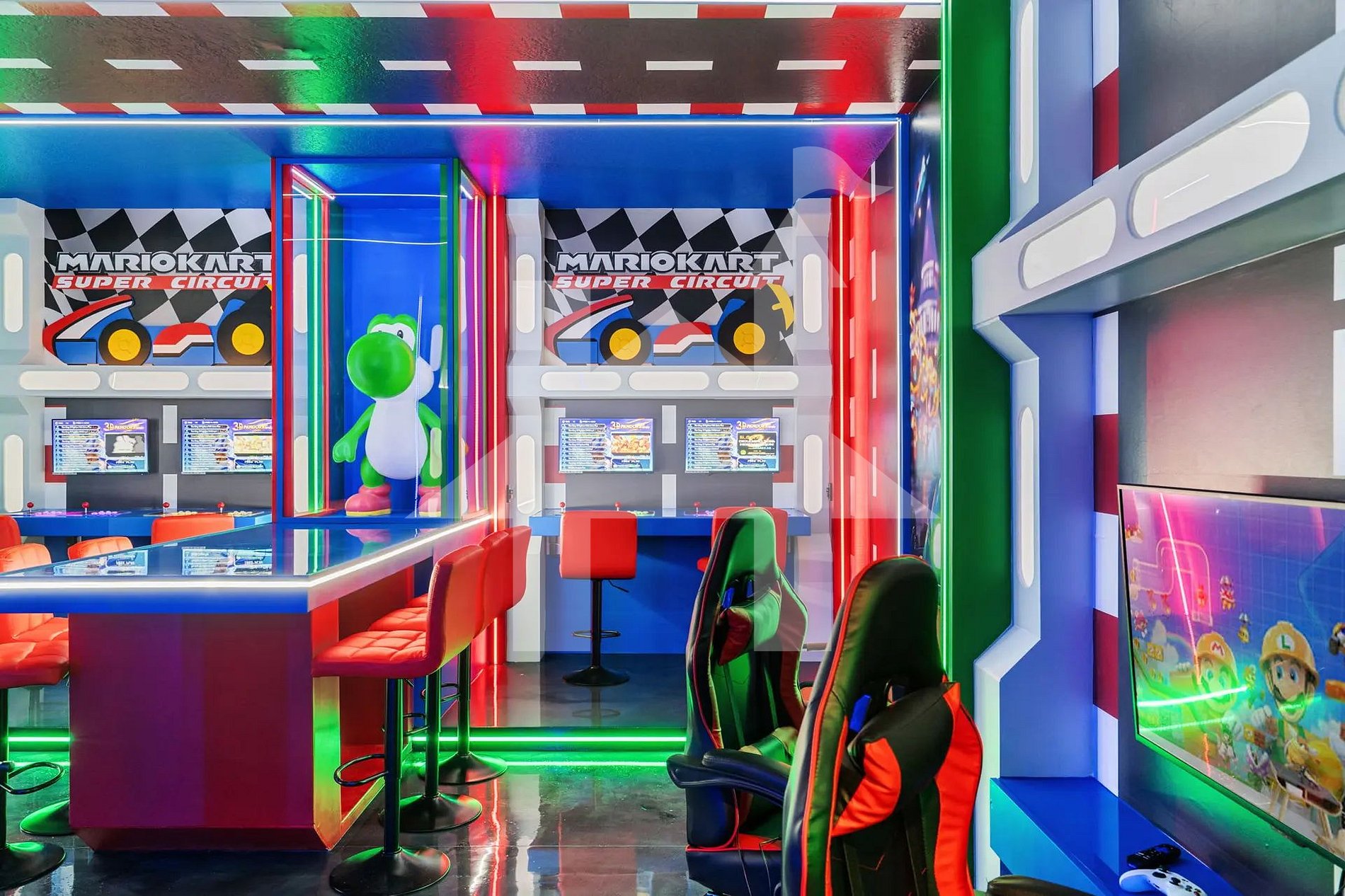 A diversão começa já no primeiro andar com a vibrante sala de jogos inspirada no universo do Mario Bros, garantindo entretenimento para todas as idades. Neste mesmo pavimento, dois quartos com cama king oferecem muito conforto: uma suíte master com banheiro privativo e uma segunda suíte king perfeita para casais ou familiares.