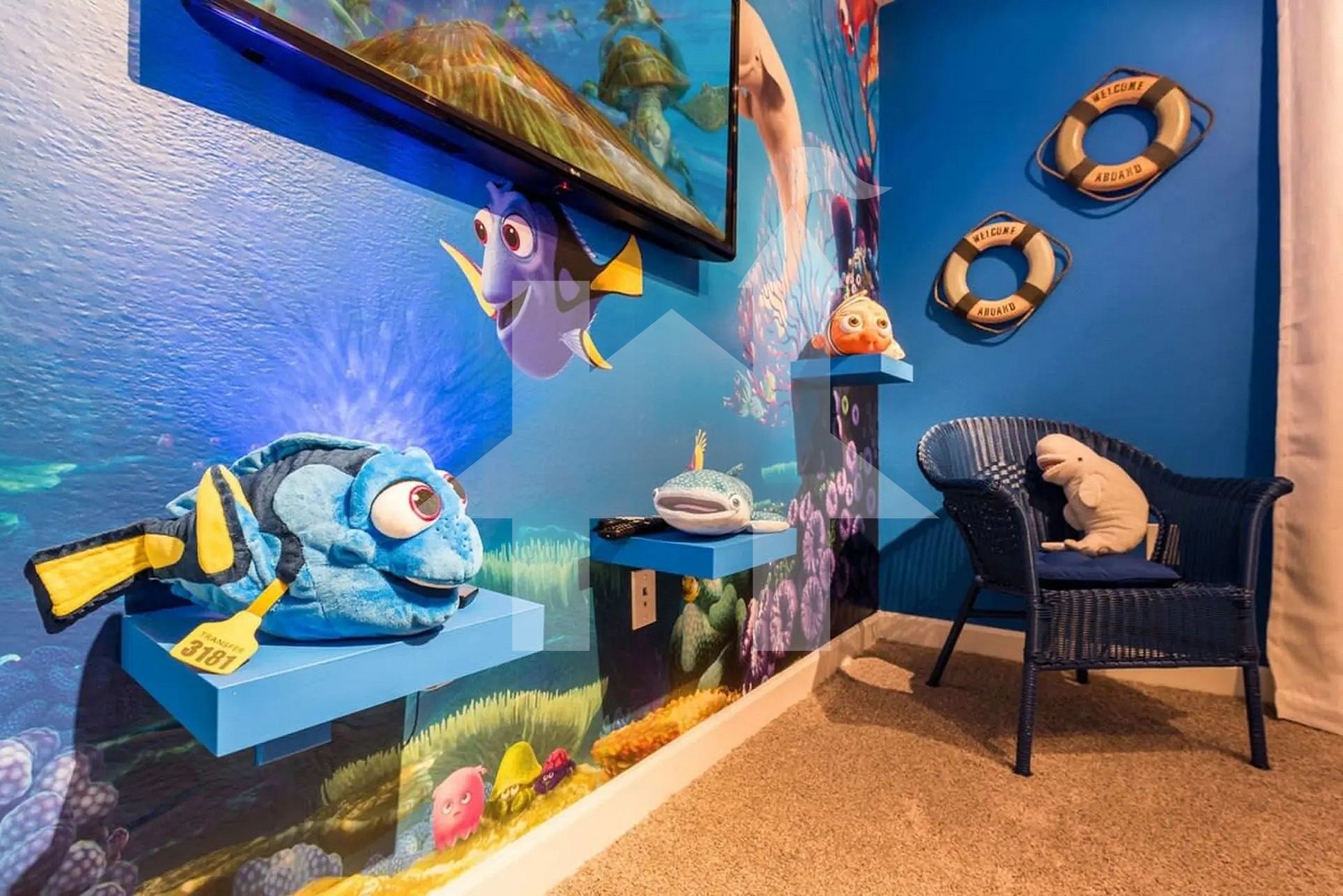 A decoração combina sofisticação com um toque divertido e acolhedor. As crianças vão se encantar com os dois quartos temáticos, inspirados nos personagens Mickey e Nemo, pensados para tornar a experiência ainda mais mágica. Os adultos, por sua vez, podem desfrutar de três suítes com camas king size, oferecendo privacidade, conforto e banheiros privativos estilo hotel.