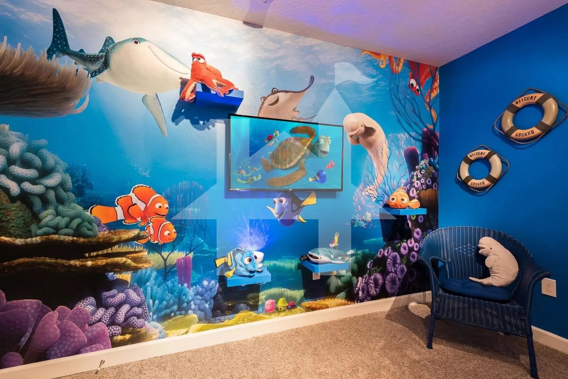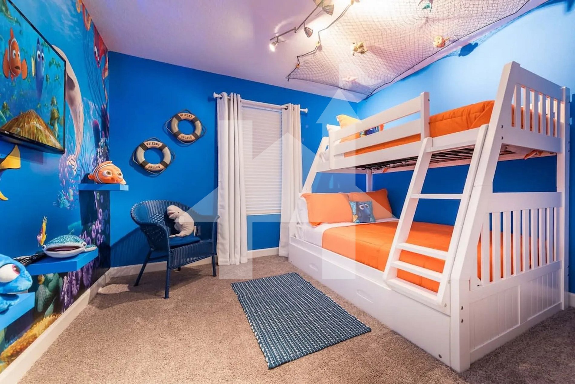 A decoração combina sofisticação com um toque divertido e acolhedor. As crianças vão se encantar com os dois quartos temáticos, inspirados nos personagens Mickey e Nemo, pensados para tornar a experiência ainda mais mágica. Os adultos, por sua vez, podem desfrutar de três suítes com camas king size, oferecendo privacidade, conforto e banheiros privativos estilo hotel.
