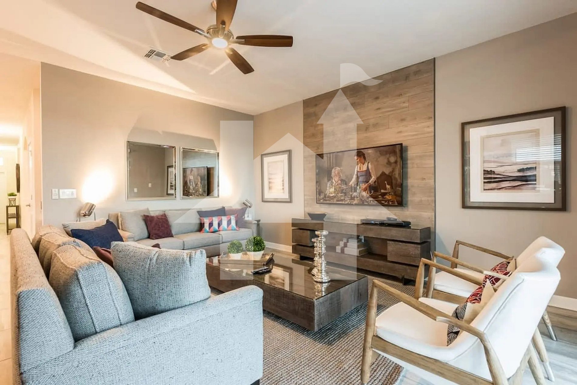 Logo na entrada, você será recebido por um ambiente integrado e elegante, que une uma cozinha totalmente equipada com eletrodomésticos modernos, uma sala de jantar espaçosa e uma confortável sala de estar com sofás amplos e TV de tela plana—o lugar ideal para relaxar após um dia cheio de aventuras.