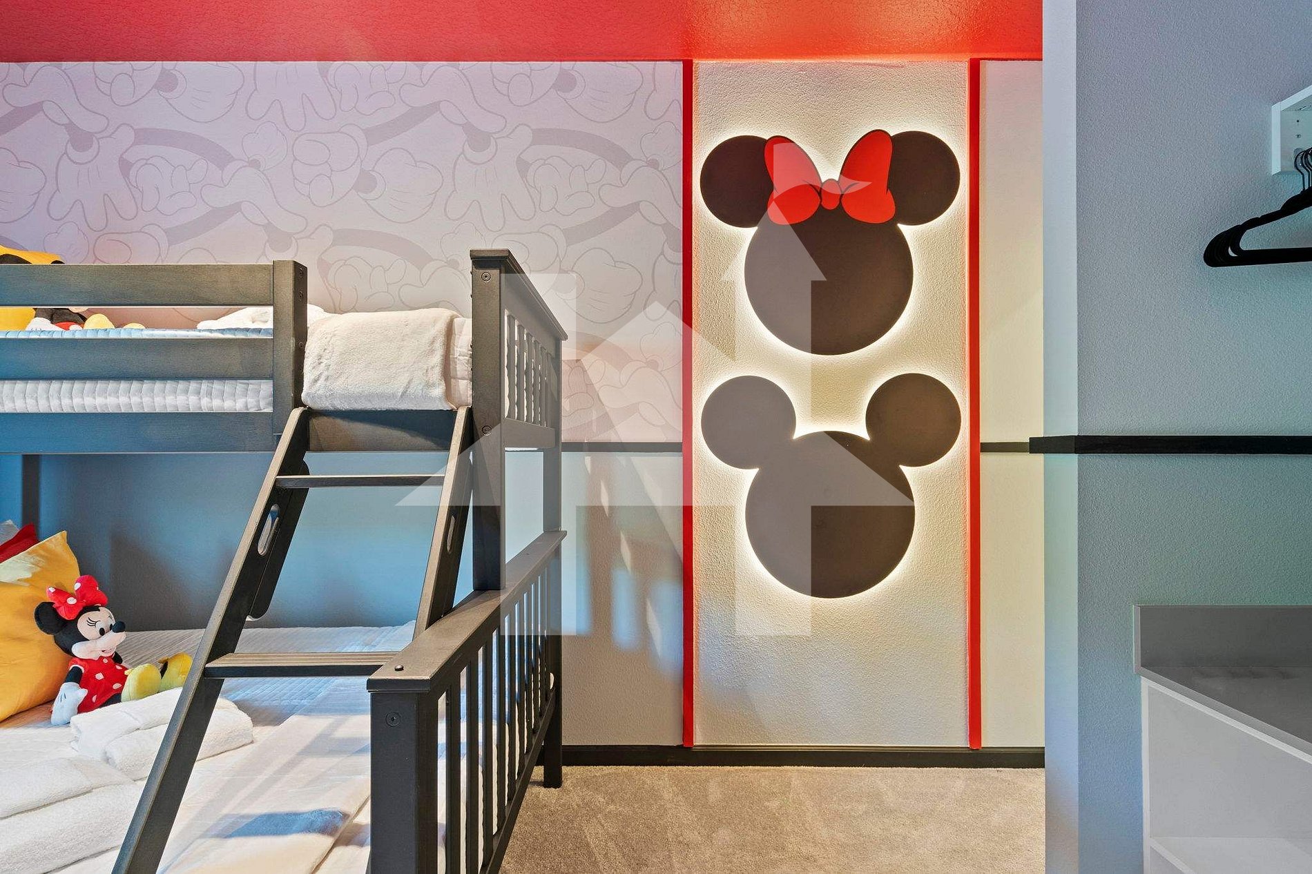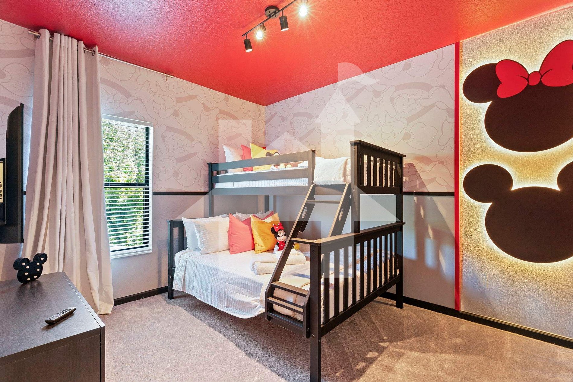 Quarto 5 (Temático - Mickey): 1 cama de casal + 1 cama de solteiro (beliche) + banheiro privativo