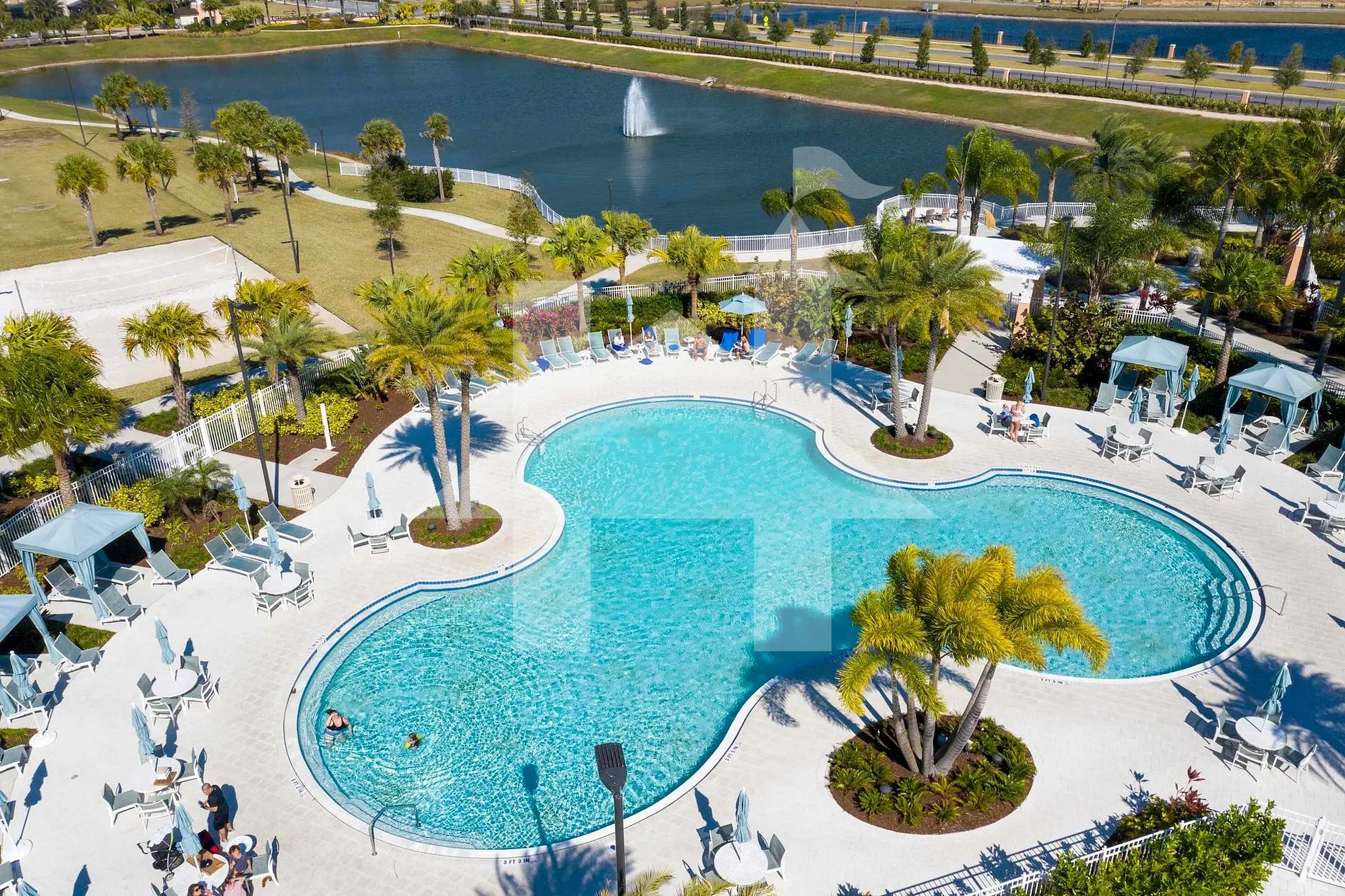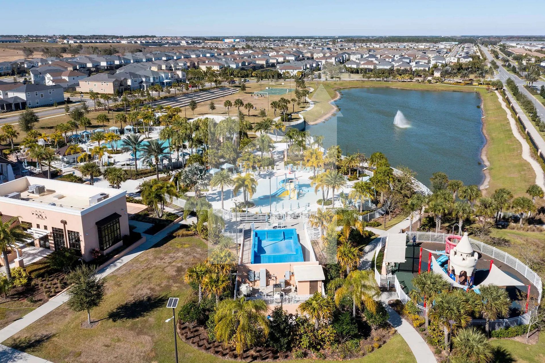 Localizada dentro do resort Solara Resort, 1575 Carey Palm Circle, Kissimmee, FL 34747, este condomínio fechado com segurança 24 horas oferece um clube principal com restaurante, bar, sorveteria, loja de conveniência, academia, playground, quadras esportivas, splash pad, FlowRider e piscina estilo resort