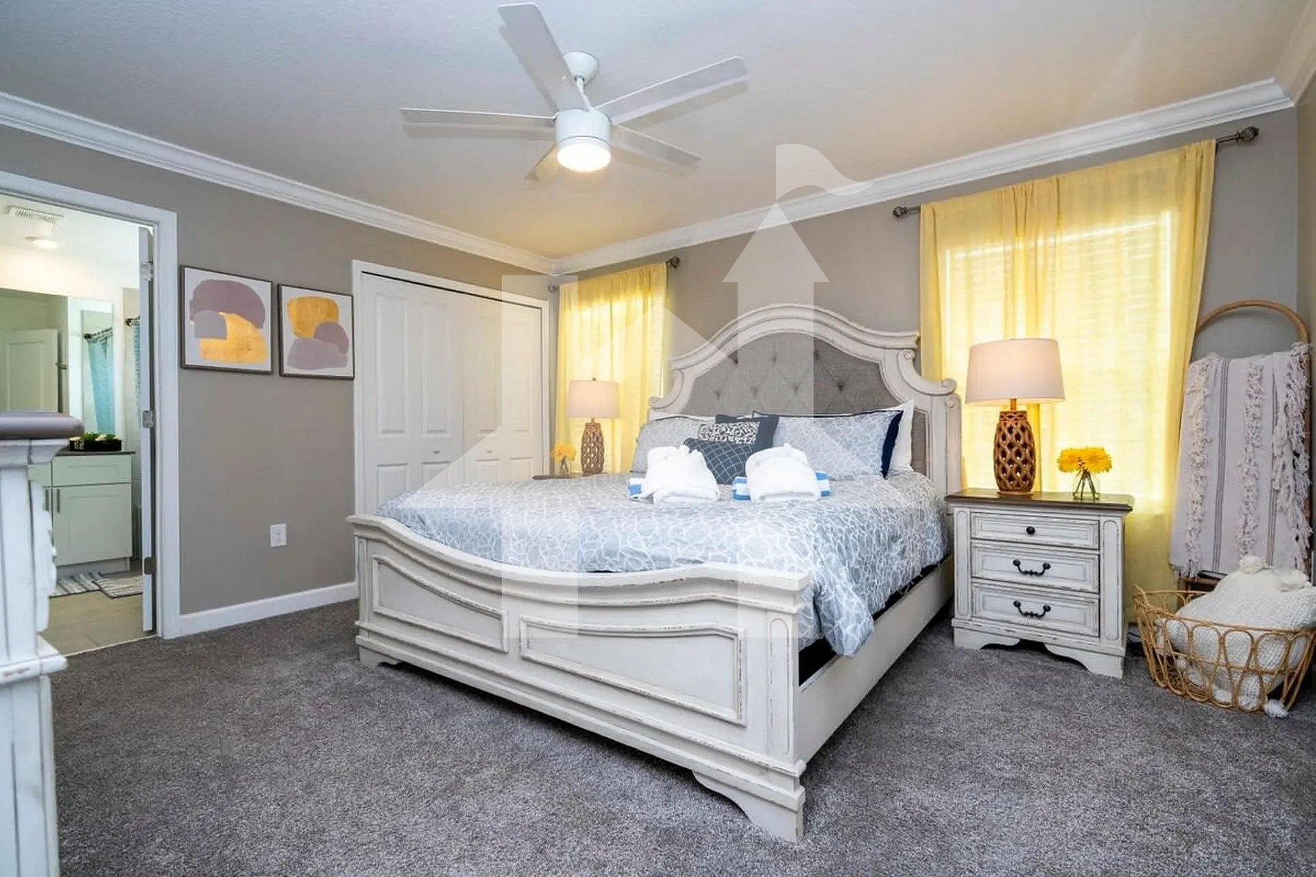 A apenas 5 milhas da Disney, esta casa moderna e familiar no Storey Lake é perfeita para férias inesquecíveis. São 4 quartos, incluindo um temático que encanta adultos e crianças, 3 banheiros e uma área externa com piscina privativa aquecida. Viva o melhor do estilo resort com estrutura completa, conforto, privacidade e suporte 24h. Aproveite também o clubhouse com rio lento, toboáguas, academia, quadras e muito mais.