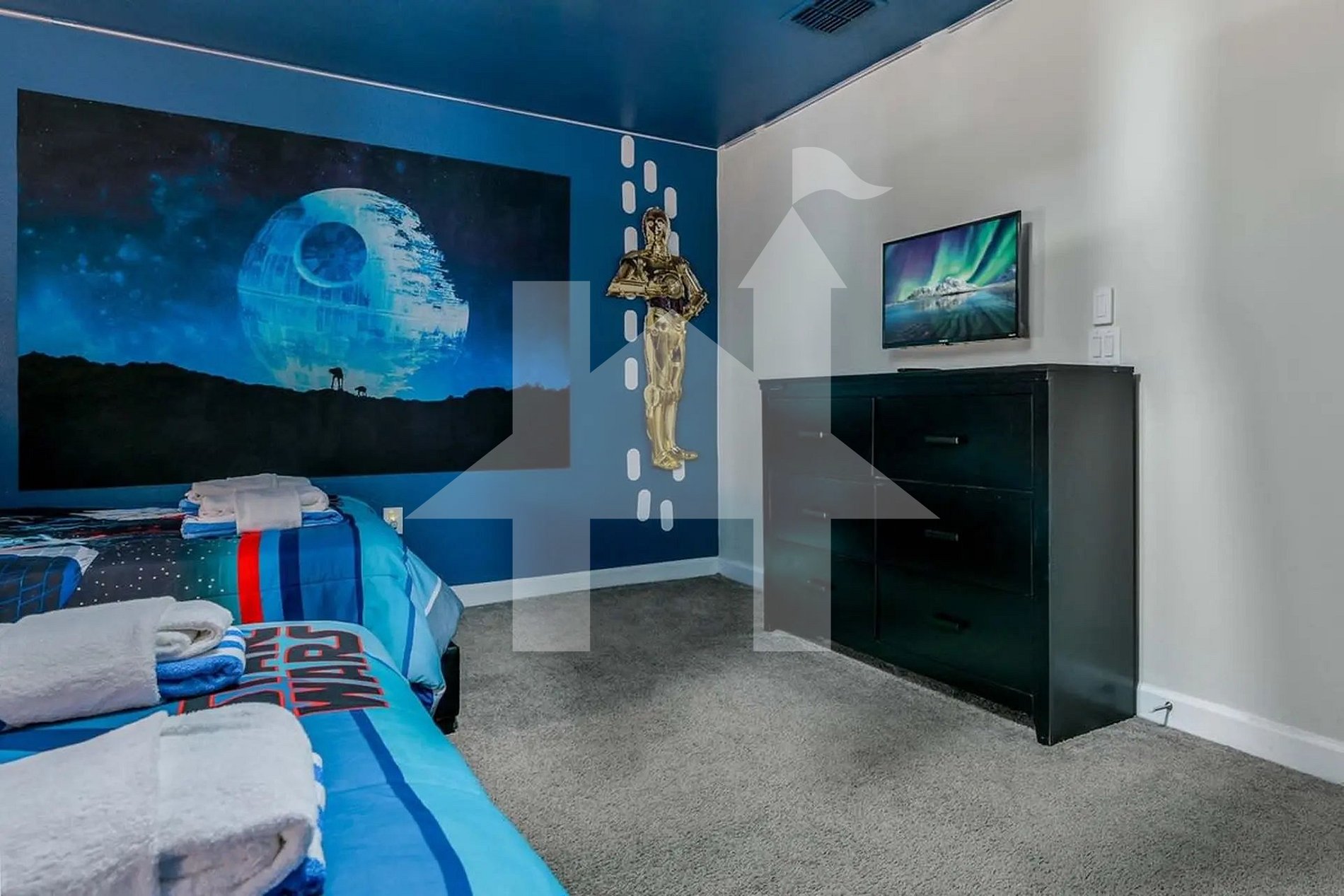 Viva a magia nesta incrível casa com 9 quartos no Storey Lake Resort, a poucos minutos da Disney e das principais atrações de Orlando. Ideal para famílias, conta com quartos temáticos (Mickey, Frozen, Harry Potter e Star Wars), piscina privativa, sala de jogos e acesso completo ao resort. Seja para curtir os parques ou relaxar, esta é a base perfeita para criar memórias inesquecíveis.