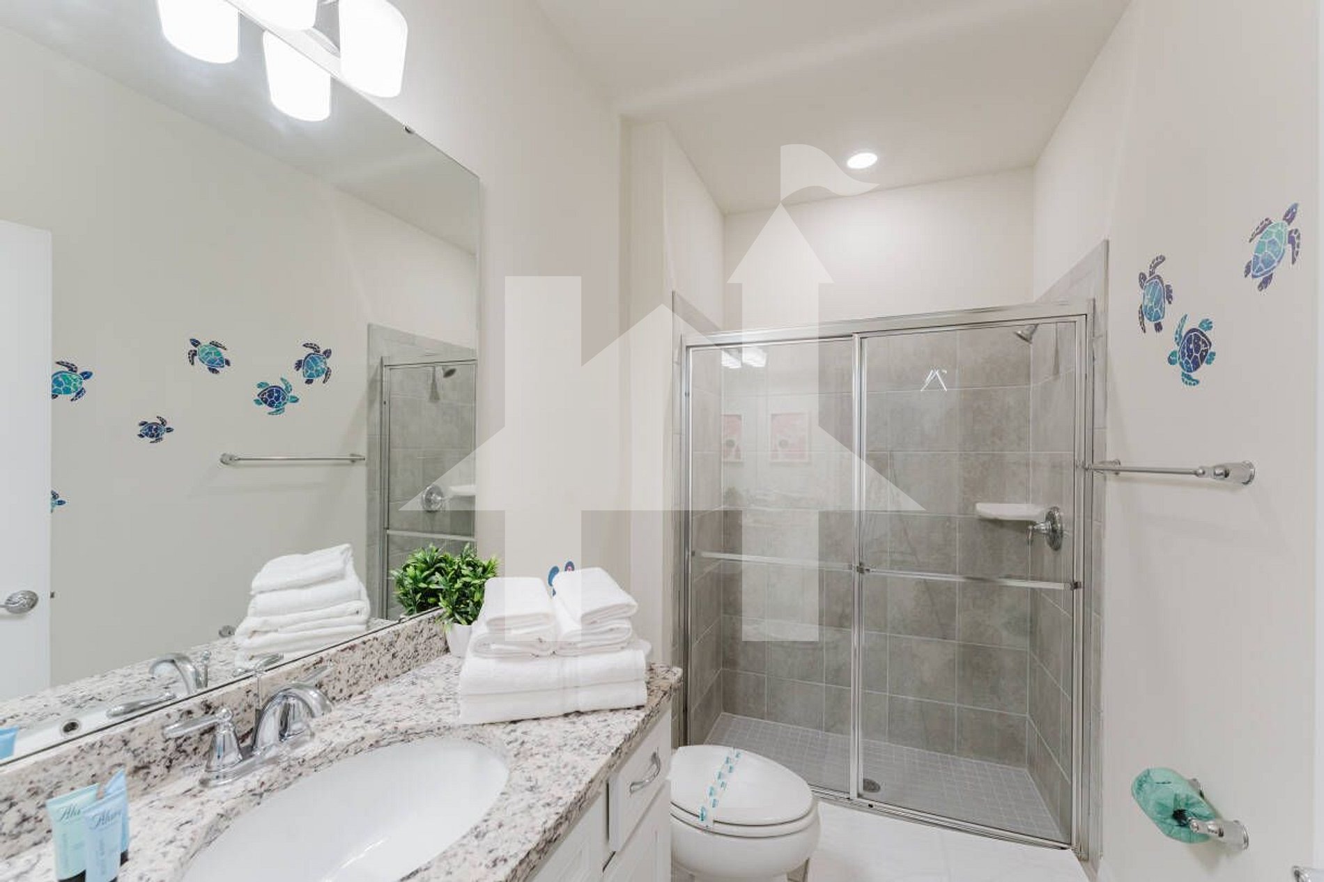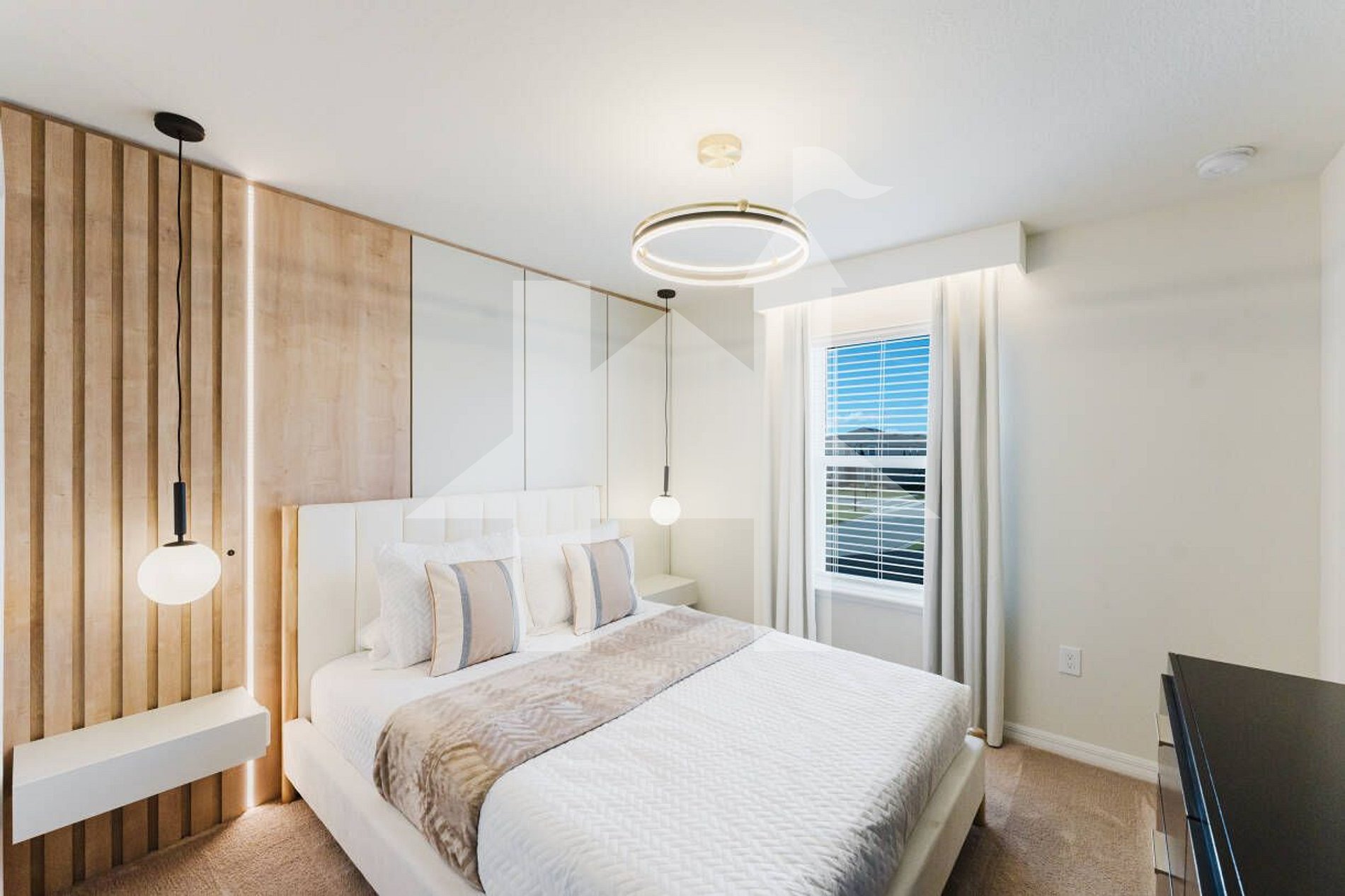 Casa moderna com 5 quartos, 4,5 banheiros e 2.265 sq ft, localizada no Windsor Island Resort, a poucos minutos da Disney. Sala ampla com TV, mesa p/ 8 e balcão p/ 4, cozinha completa. No andar superior: loft com TV smart e PS5. Quartos: 2 king, 1 queen, beliches temáticos (Princesas e Toy Story). Wi‑Fi grátis, TV a cabo, lavanderia, ar-condicionado central. Piscina privativa aquecível e churrasqueira como extras.