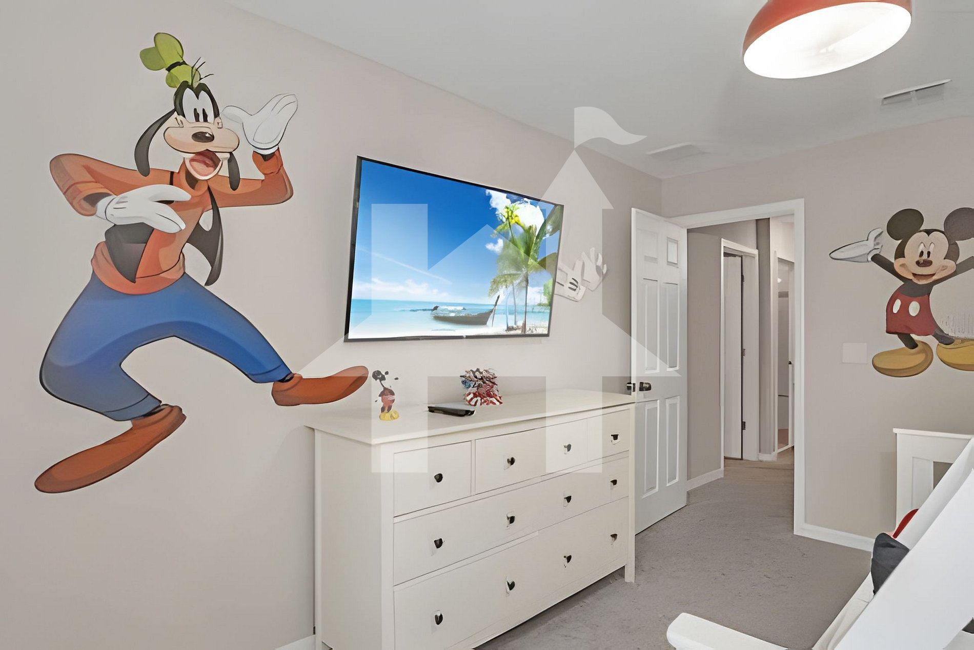 • Quarto Temático Mickey – Beliche (Twin sobre Full com cama auxiliar) acomoda até 4 pessoas + Smart TV 32”