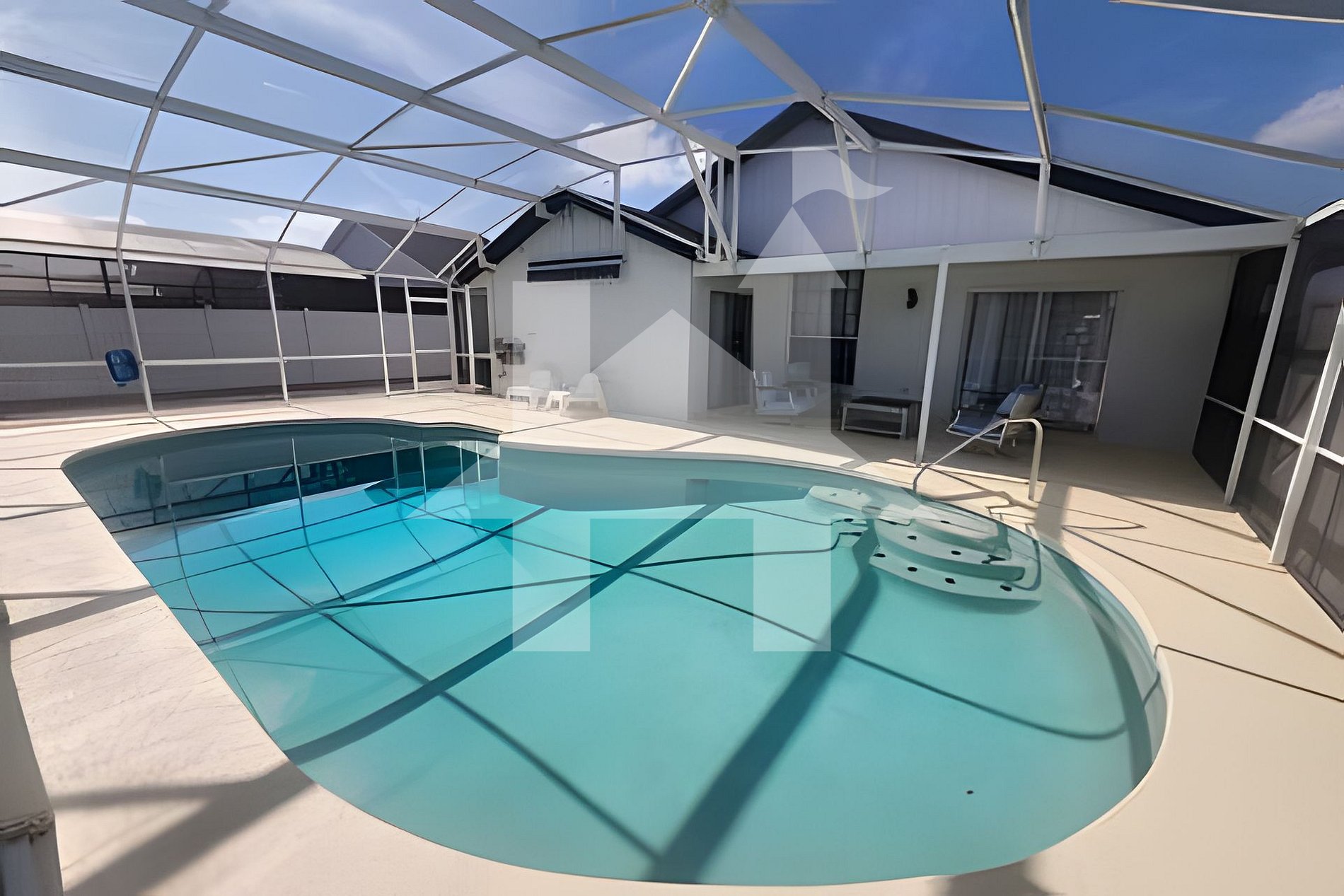 Desfrute desta elegante villa térrea de 3 quartos e 2 banheiros na comunidade Indian Wells, em Kissimmee, ao lado da Disney. Para até 8 hóspedes em 1.500 sq ft de ambientes com ar‑condicionado e piso frio. Wi‑Fi rápido, piscina privada, varanda coberta, garagem para 2 carros e cozinha completa com lavanderia. Jardim e piscina com privacidade total. Berço e cadeirinha incluídos.