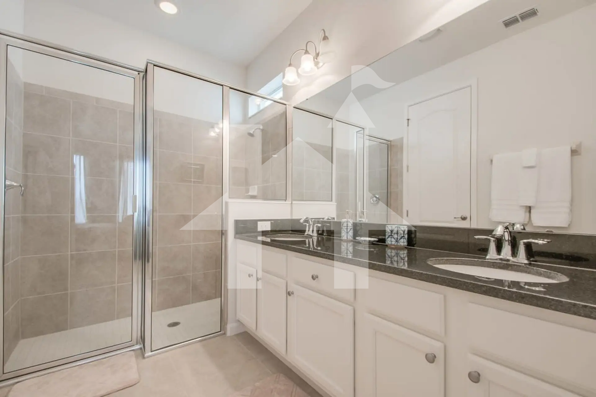 Um banheiro compartilhado atende convenientemente os quartos queen e de solteiro.