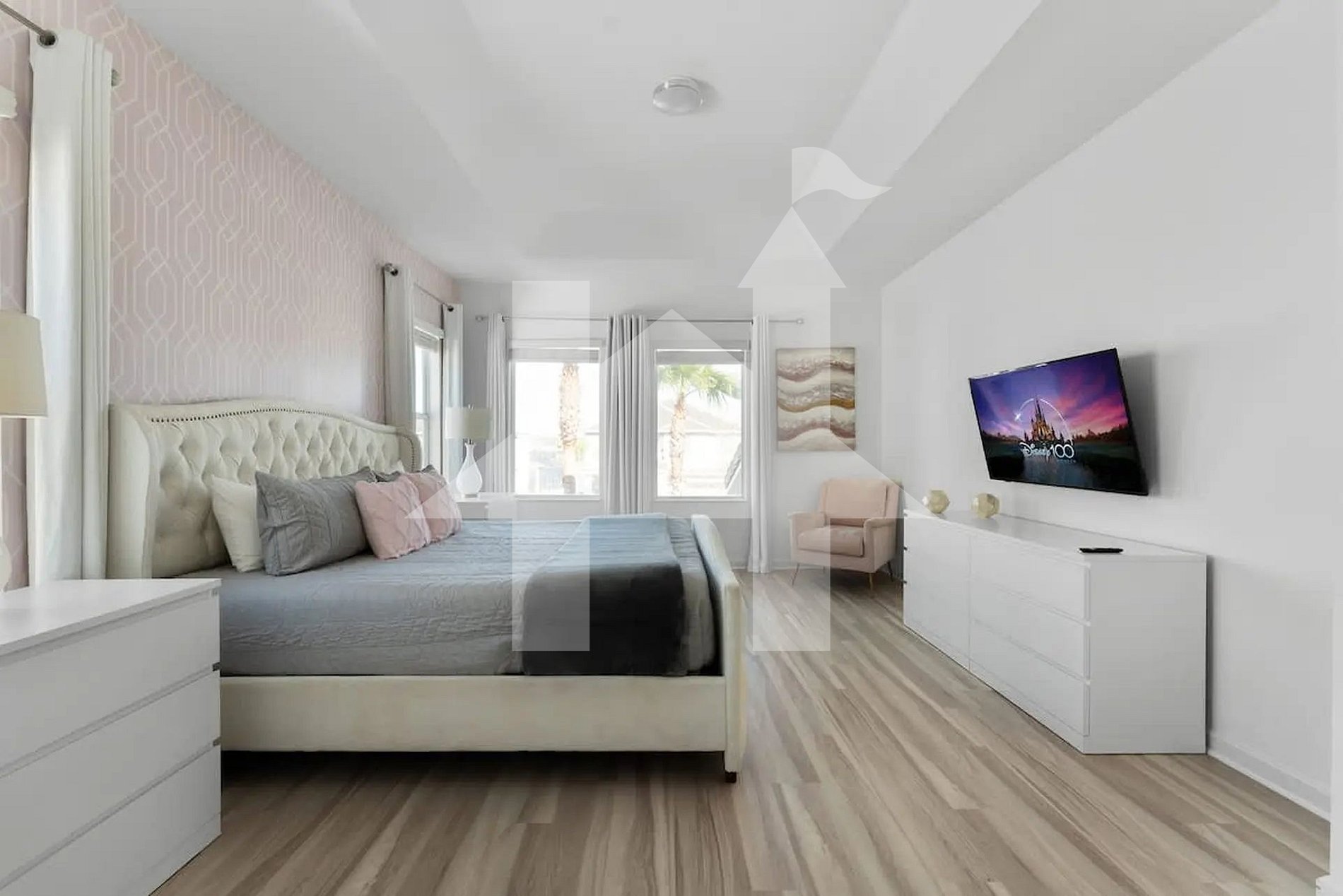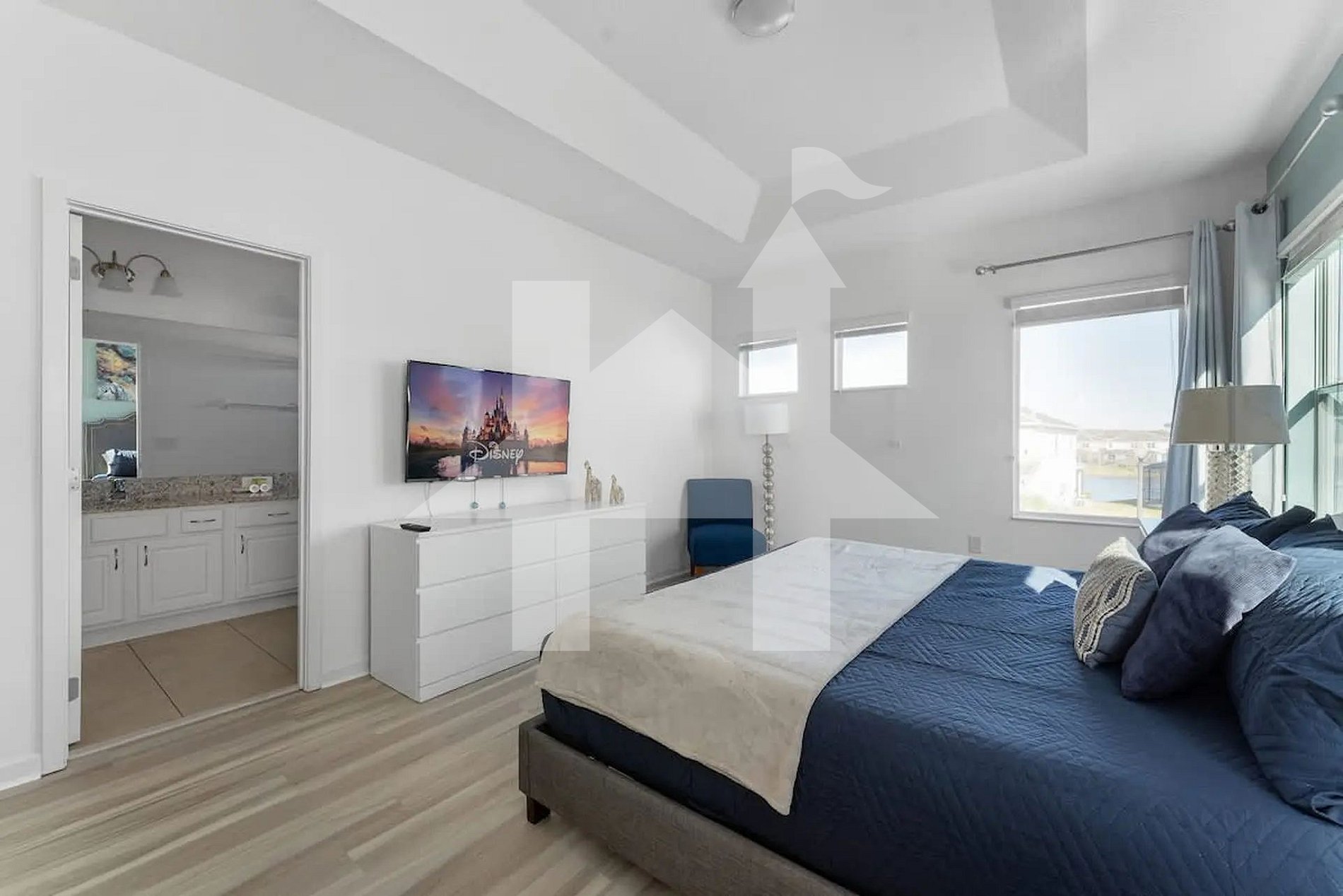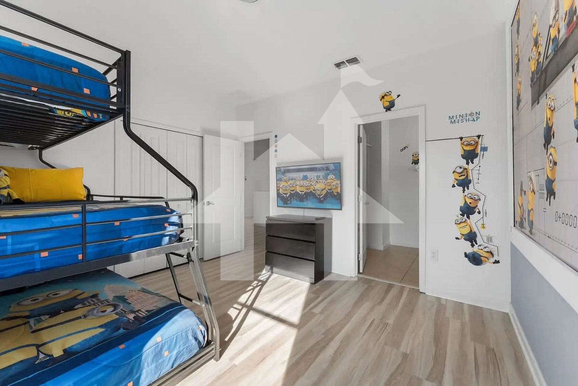 Ampla e elegante casa de 5 quartos e 5 banheiros, perfeita para famílias e grupos, acomodando até 15 hóspedes com conforto. Conta com 3 camas king, 1 beliche (full + full + twin) e 1 beliche (full + full). Ambientes climatizados, cozinha completa e áreas de convivência integradas para momentos inesquecíveis. Ideal para curtir Orlando com espaço, privacidade, lazer e toda a comodidade de um lar.