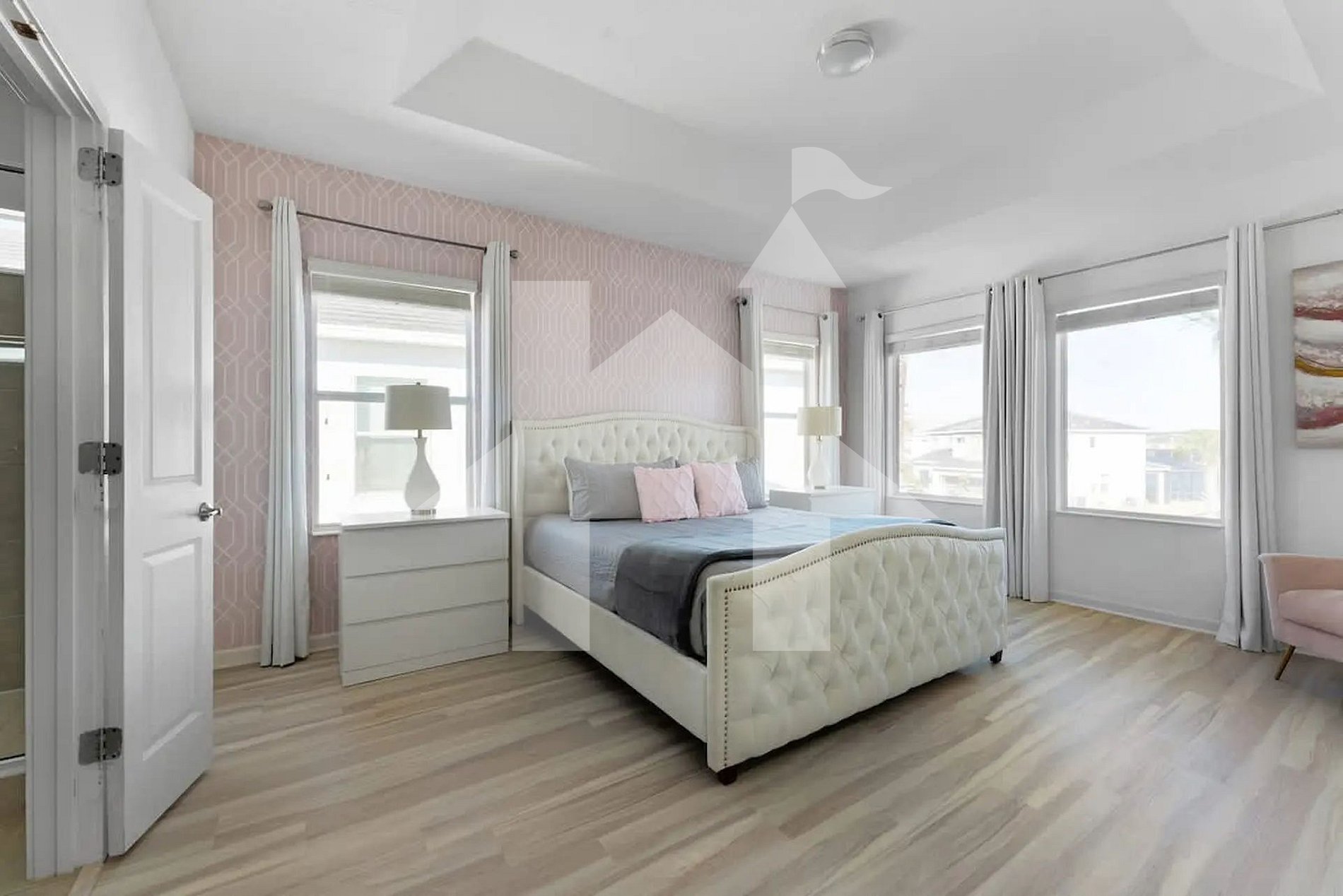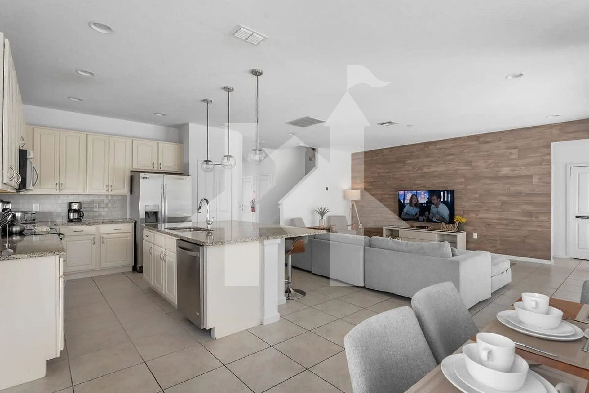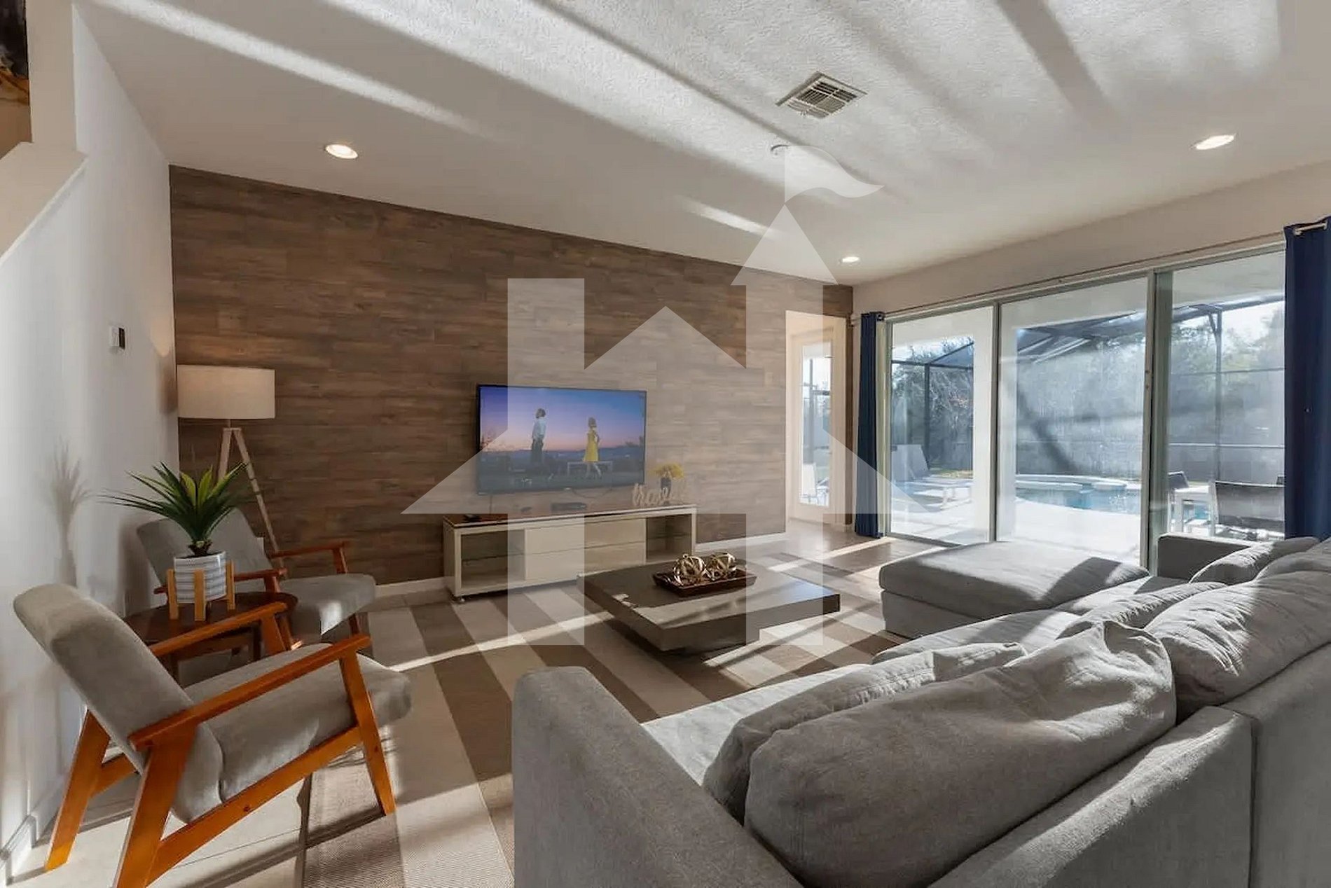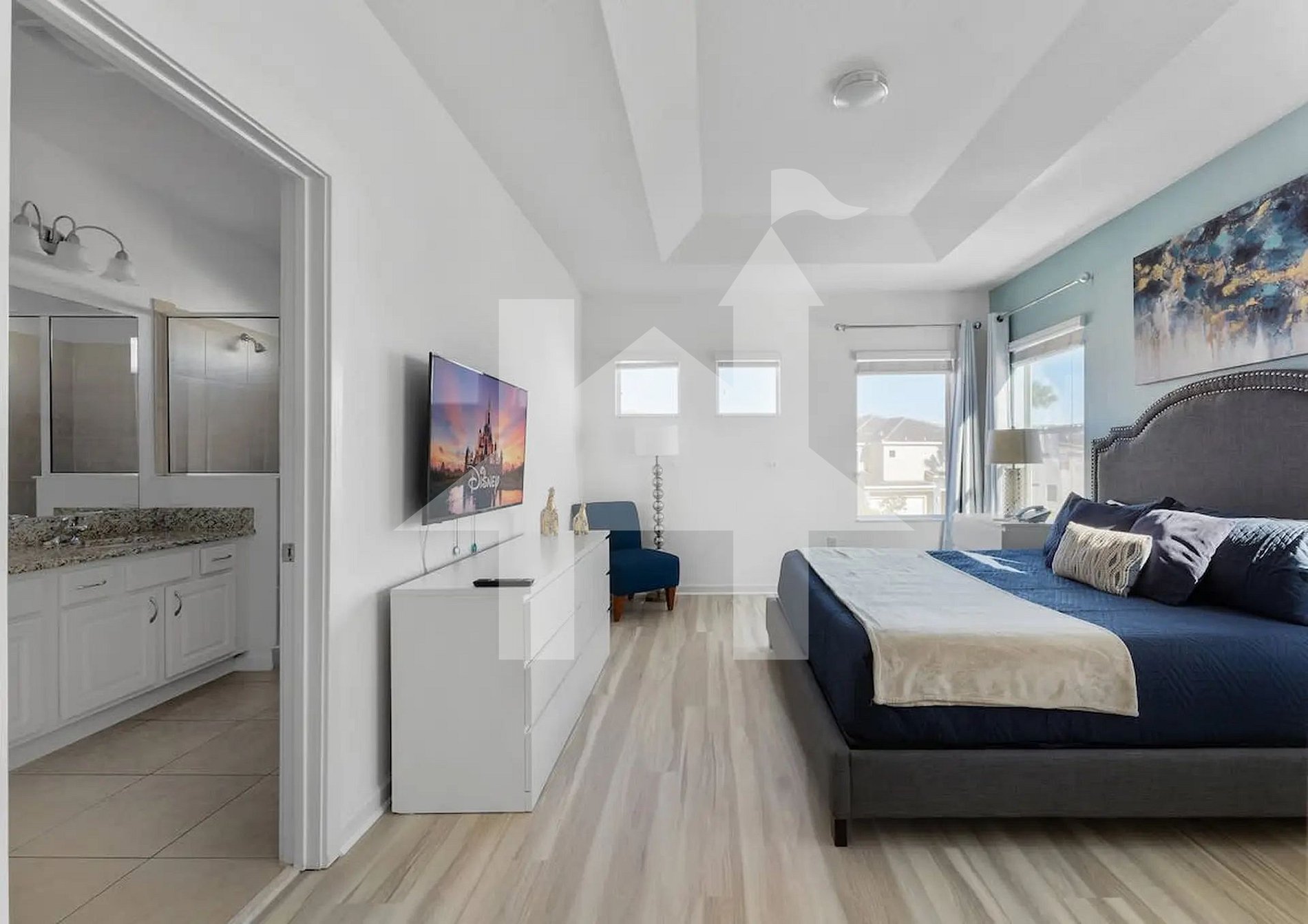 Ampla e elegante casa de 5 quartos e 5 banheiros, perfeita para famílias e grupos, acomodando até 15 hóspedes com conforto. Conta com 3 camas king, 1 beliche (full + full + twin) e 1 beliche (full + full). Ambientes climatizados, cozinha completa e áreas de convivência integradas para momentos inesquecíveis. Ideal para curtir Orlando com espaço, privacidade, lazer e toda a comodidade de um lar.