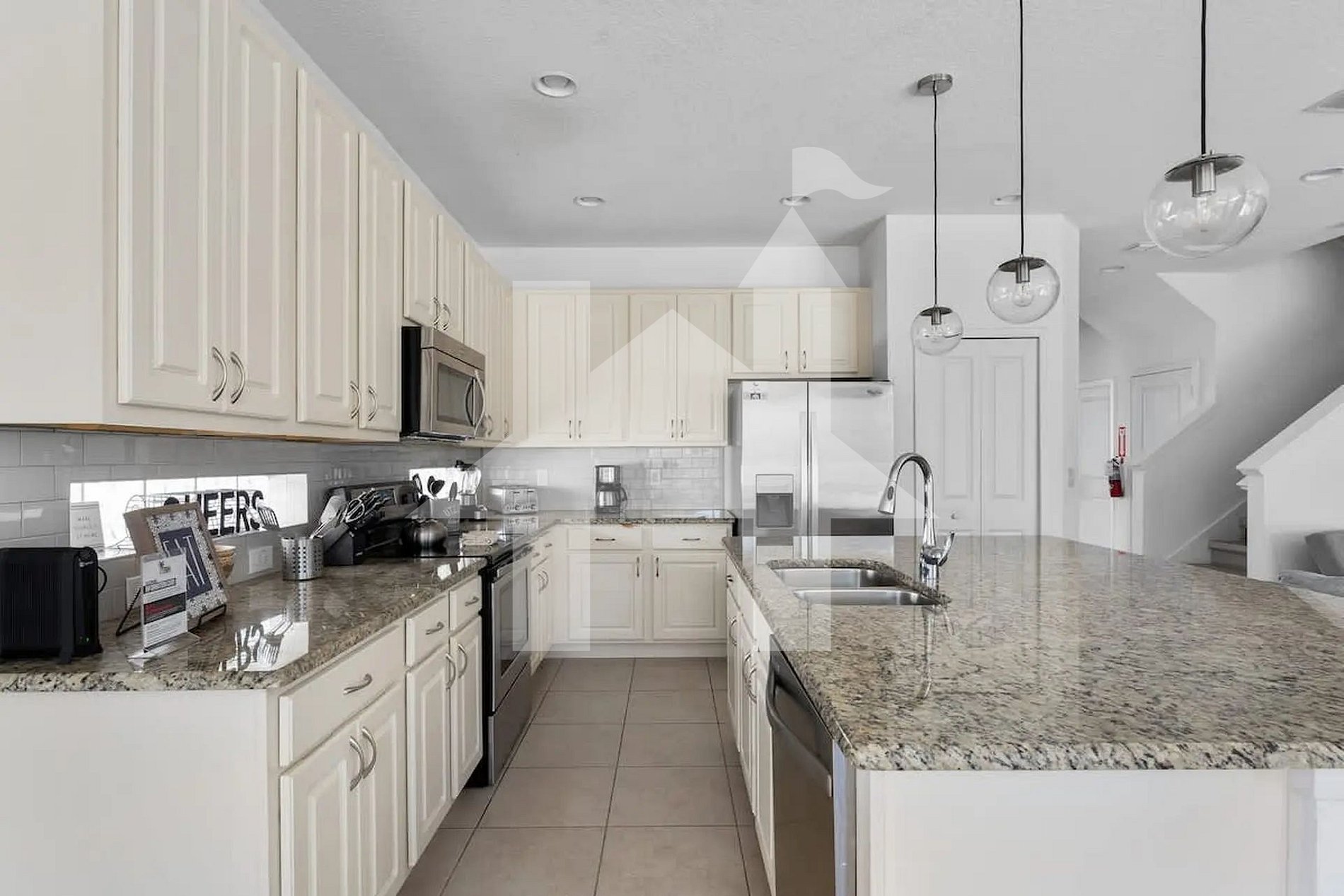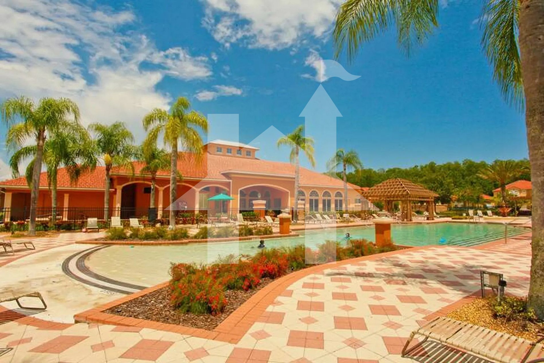 Condomínio gated com segurança 24 h, lagos e áreas verdes. Amenidades: 2 piscinas, hot tub, fitness, salas de jogos/TV, business center, trilhas e jardins, playground, quadras esportivas e área de piquenique. 15 min da Disney, perto de restaurantes e Walmart 24 h.