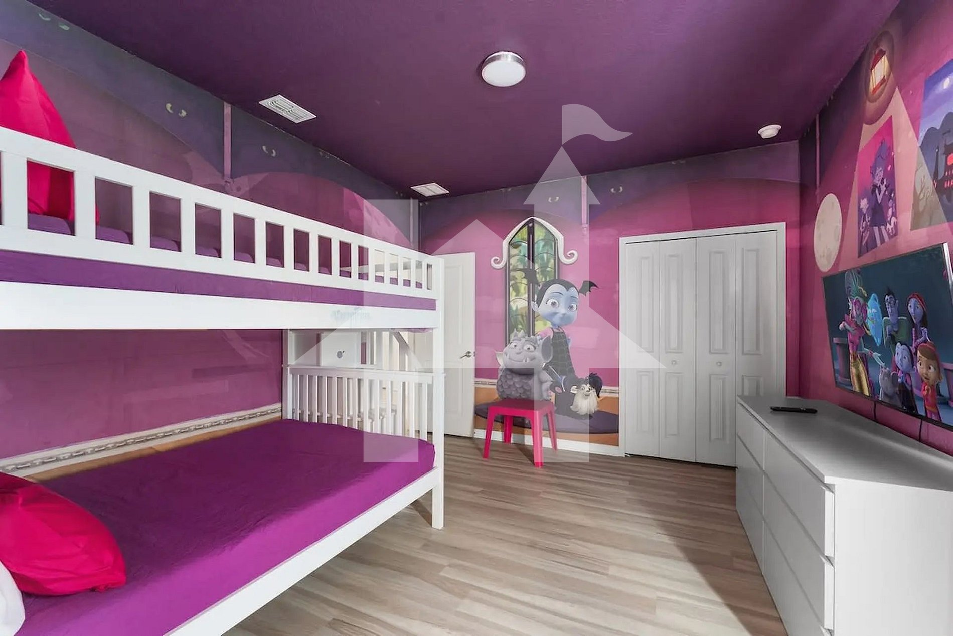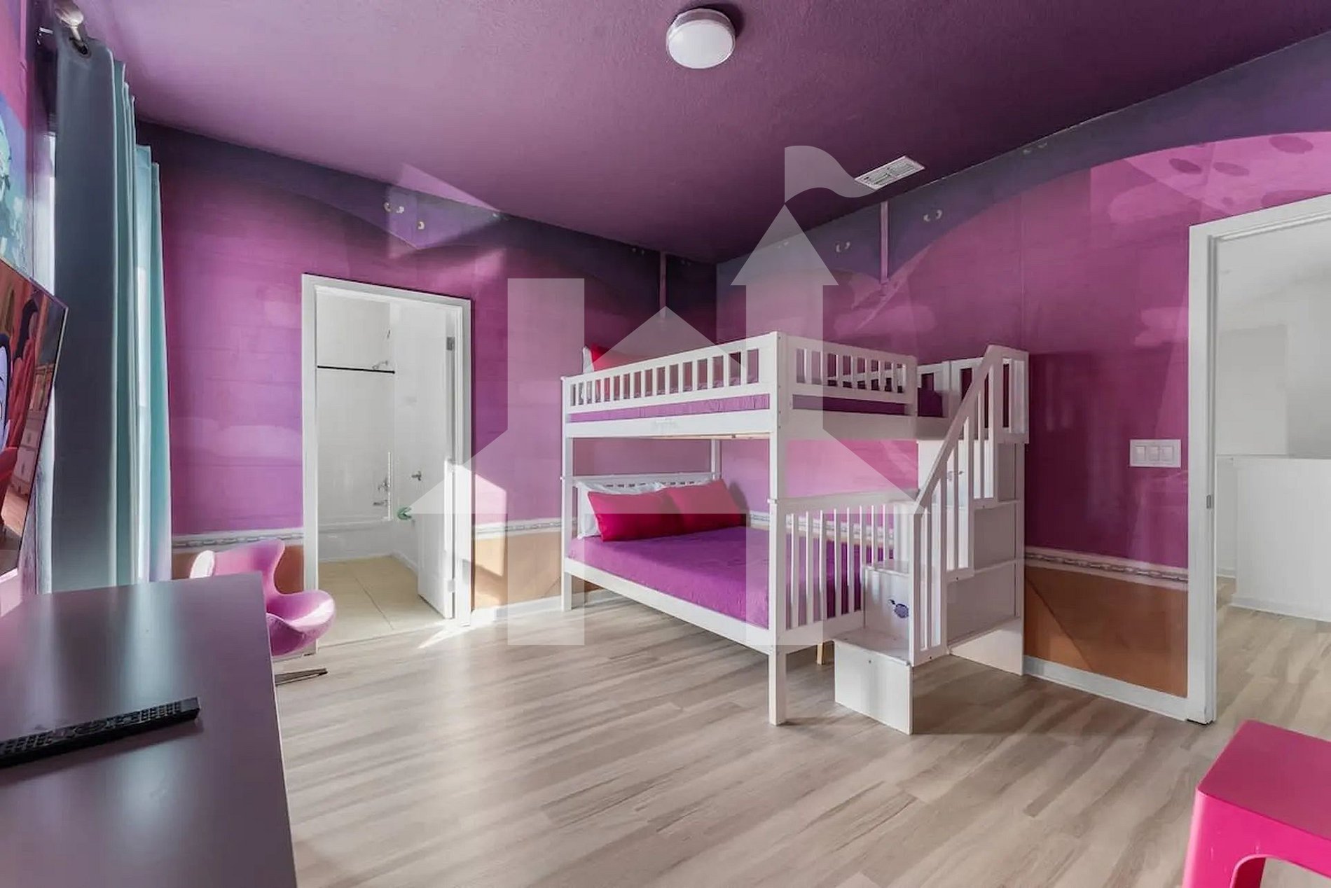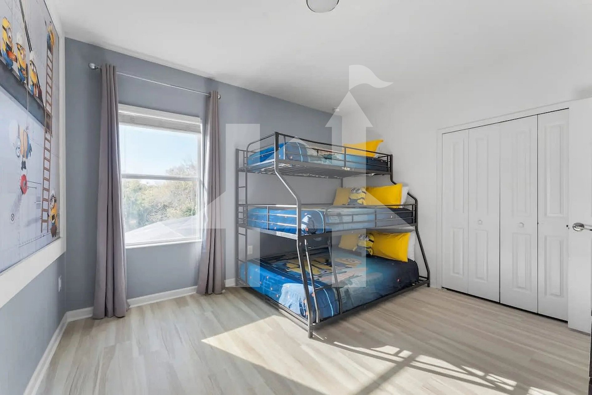 Ampla e elegante casa de 5 quartos e 5 banheiros, perfeita para famílias e grupos, acomodando até 15 hóspedes com conforto. Conta com 3 camas king, 1 beliche (full + full + twin) e 1 beliche (full + full). Ambientes climatizados, cozinha completa e áreas de convivência integradas para momentos inesquecíveis. Ideal para curtir Orlando com espaço, privacidade, lazer e toda a comodidade de um lar.