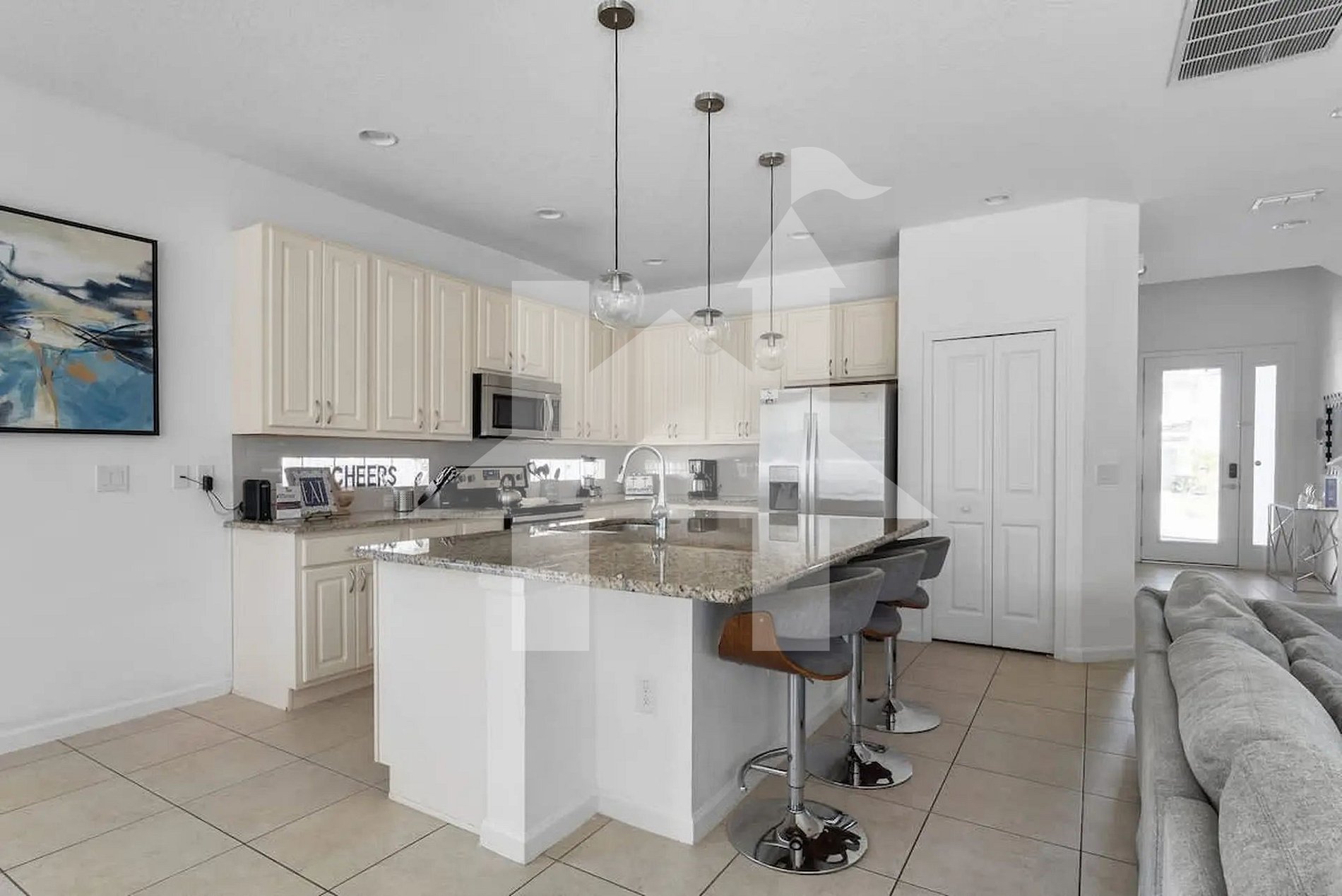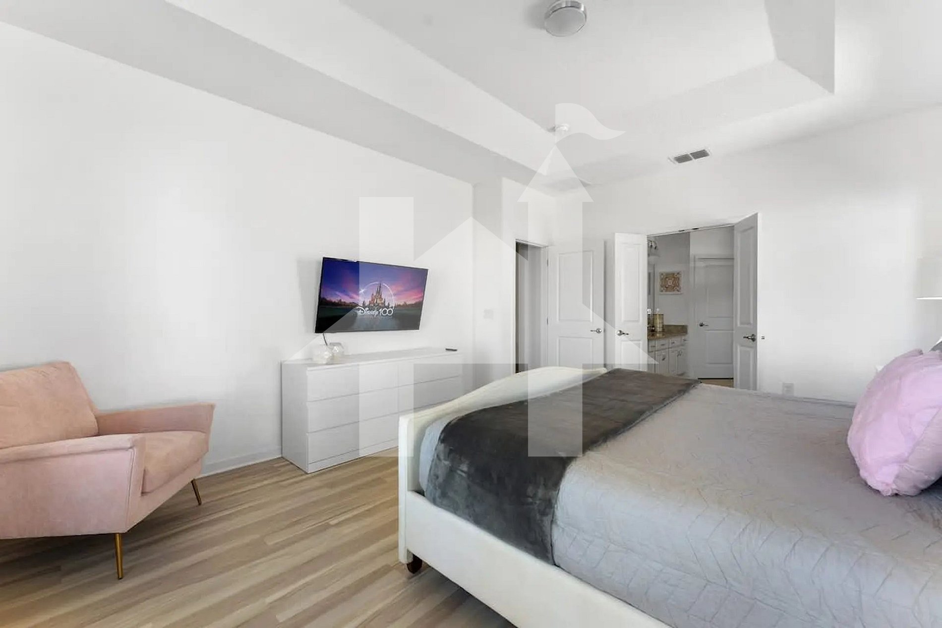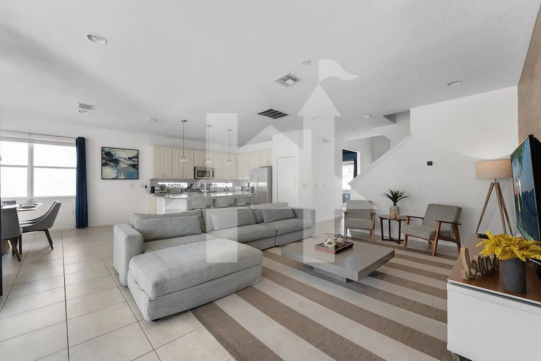Ampla e elegante casa de 5 quartos e 5 banheiros, perfeita para famílias e grupos, acomodando até 15 hóspedes com conforto. Conta com 3 camas king, 1 beliche (full + full + twin) e 1 beliche (full + full). Ambientes climatizados, cozinha completa e áreas de convivência integradas para momentos inesquecíveis. Ideal para curtir Orlando com espaço, privacidade, lazer e toda a comodidade de um lar.