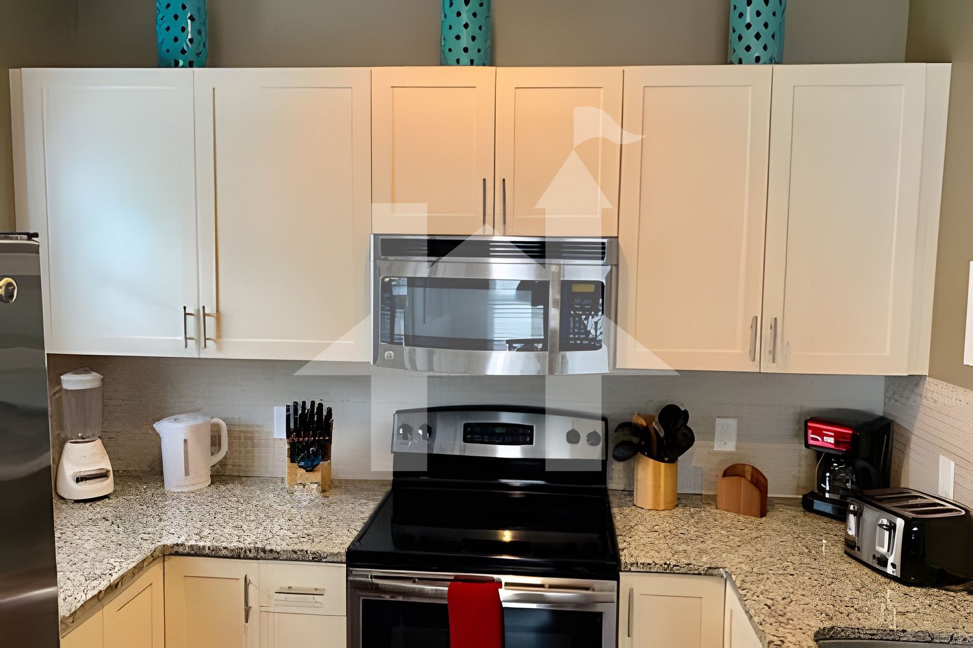 Cozinha com bancadas em granito e eletrodomésticos em inox