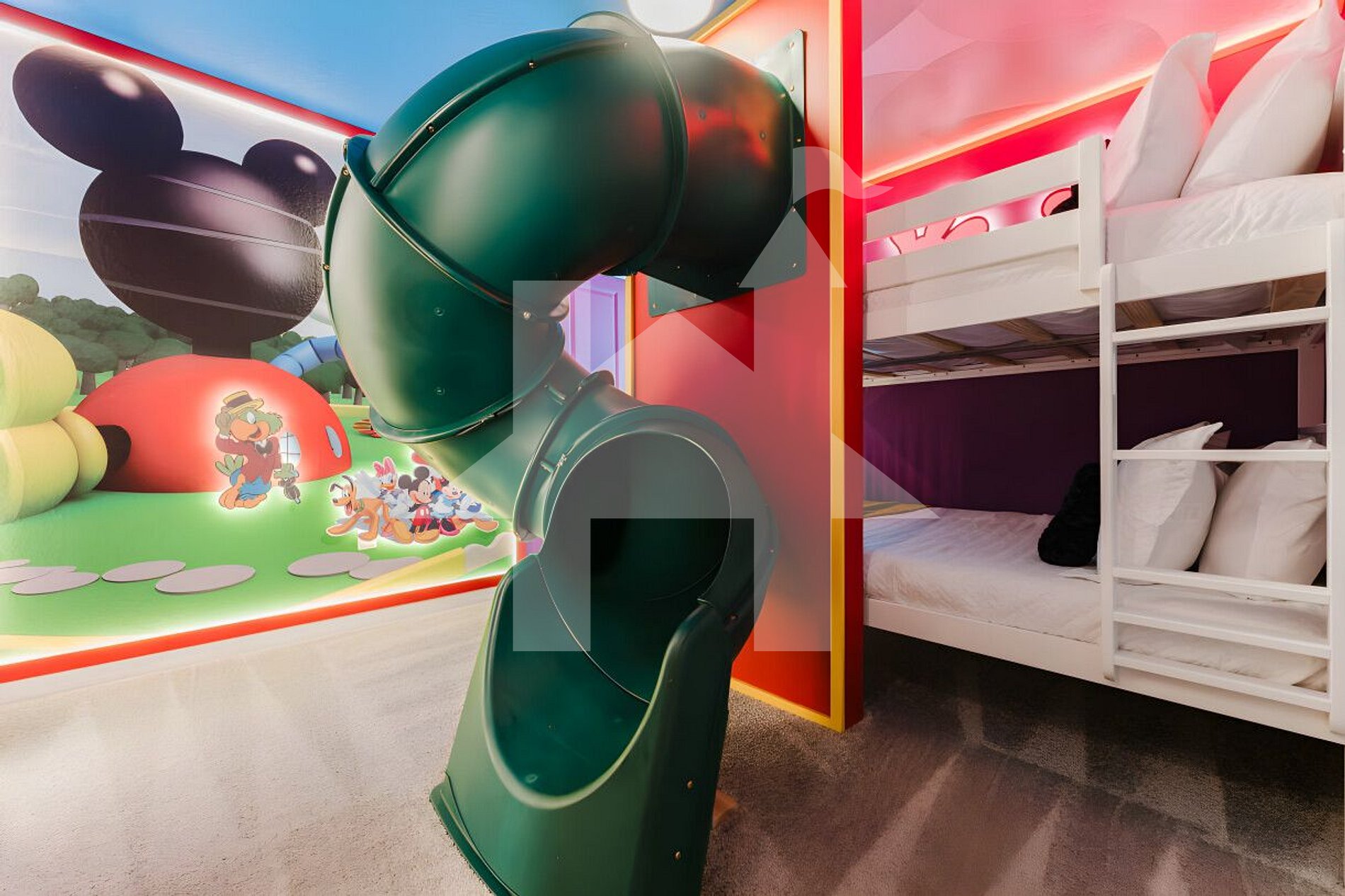 Quarto temático Mickey com beliche Full/Full (banheiro compartilhado)