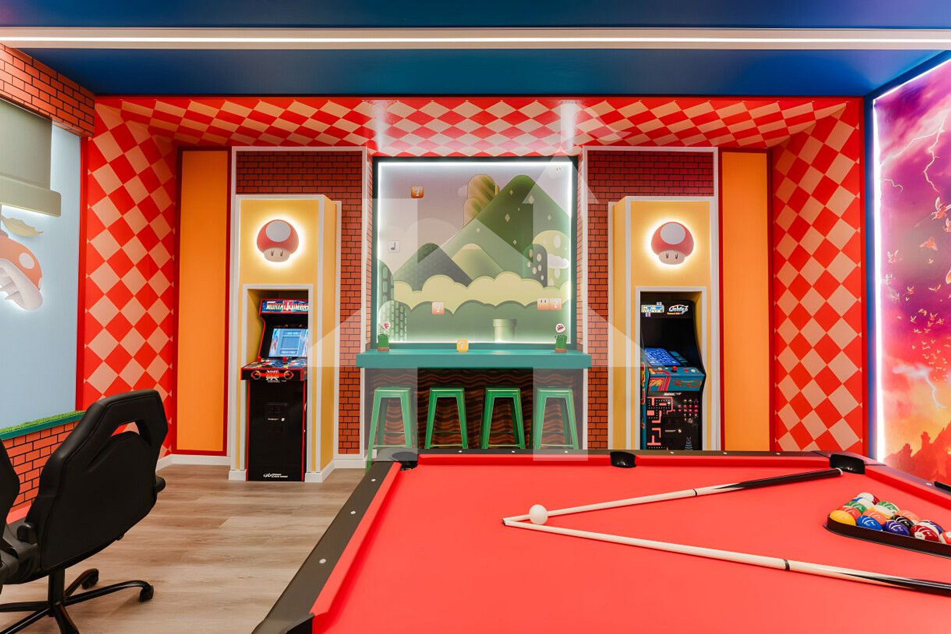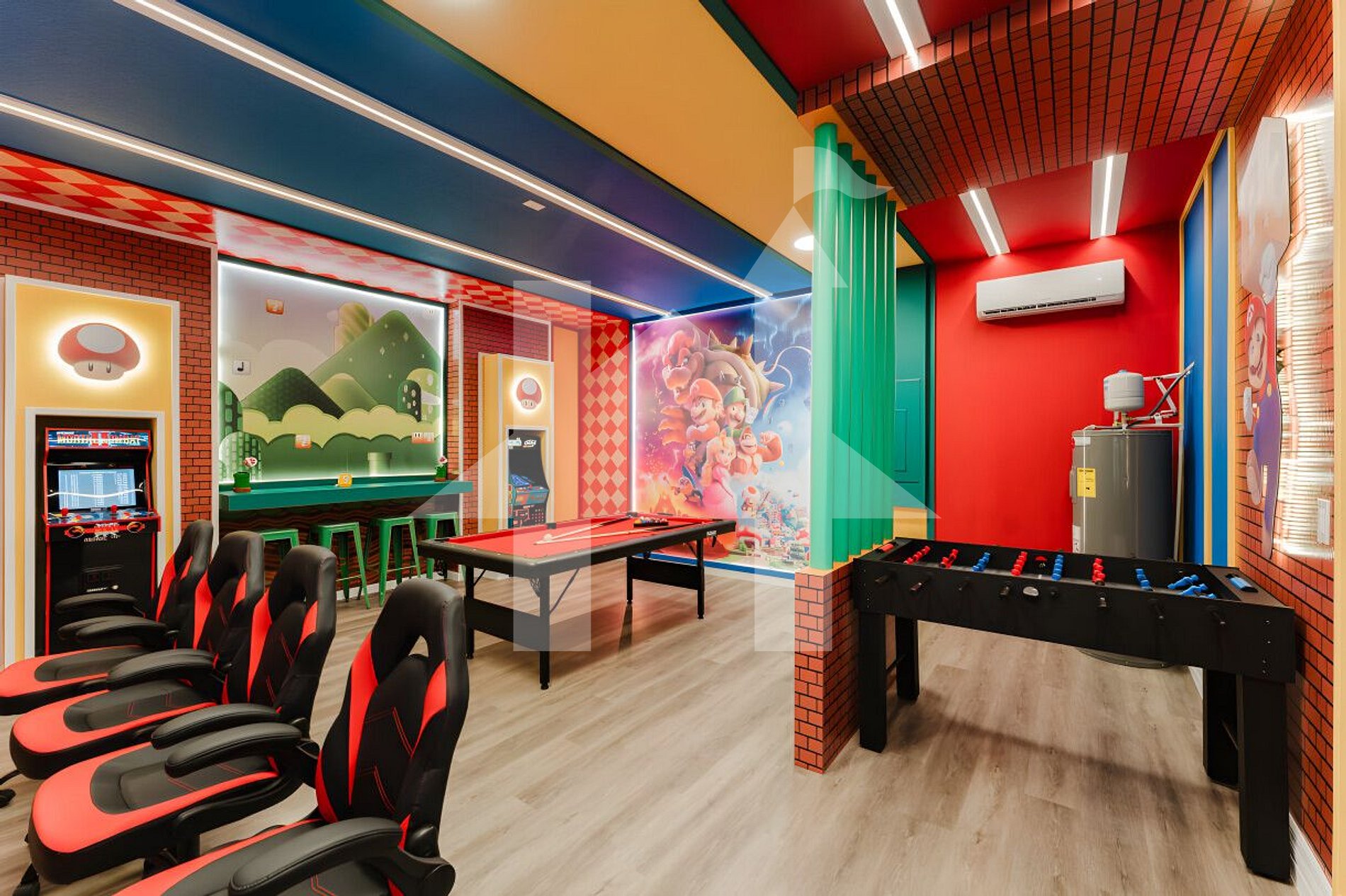 Hospede-se em uma luxuosa casa de 8 quartos e 6 banheiros no novo Windsor Cay Resort, a poucos minutos da Disney. Perfeita para famílias e grandes grupos, oferece piscina privativa, cozinha equipada, áreas de convivência modernas e quartos temáticos (Mickey, Star Wars e Princesas). Aproveite também todas as comodidades do resort, como lazy river, clubhouse, quadras esportivas e academia. A melhor experiência de férias em Orlando.