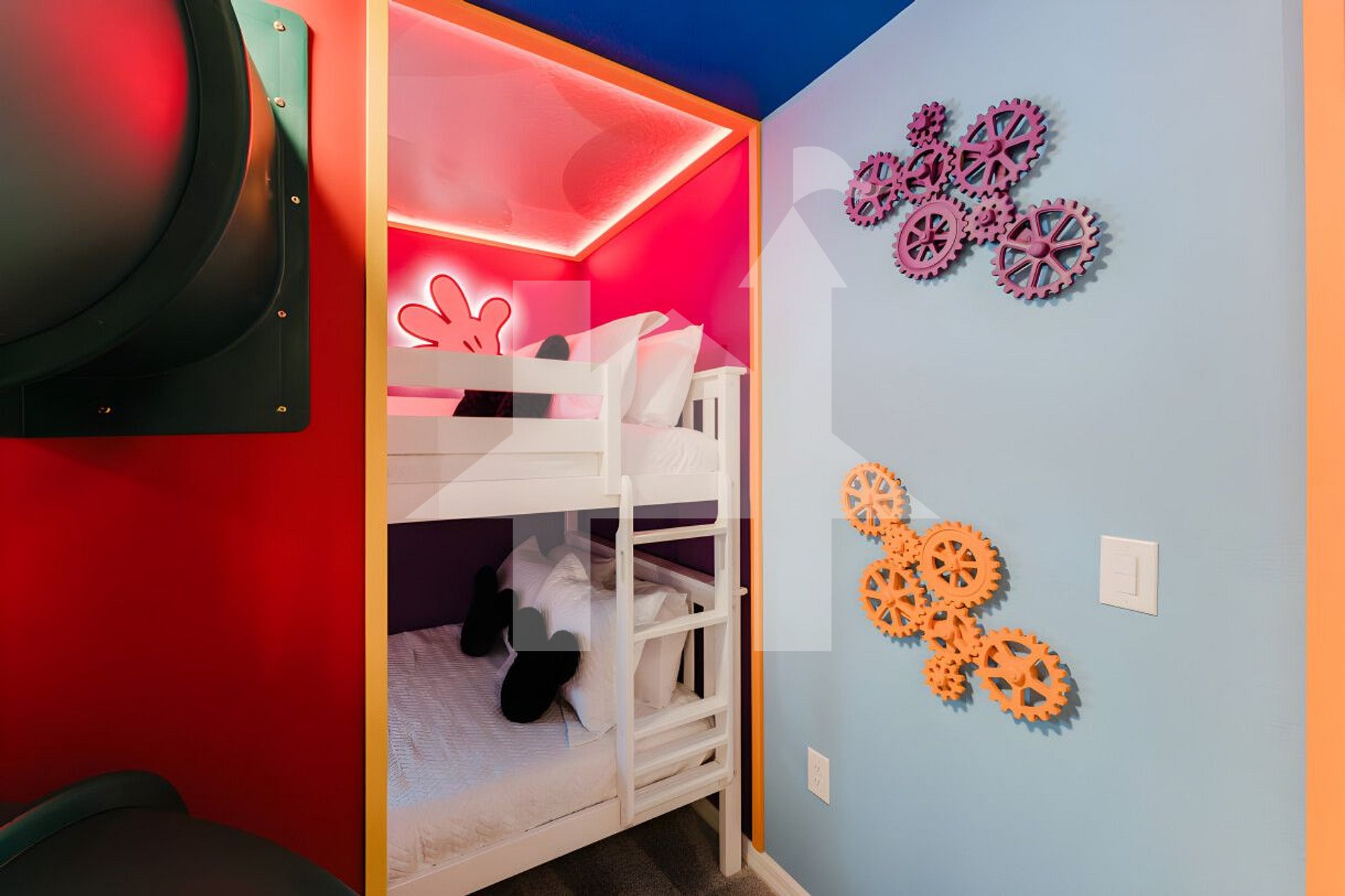 Quarto temático Mickey com beliche Full/Full (banheiro compartilhado)